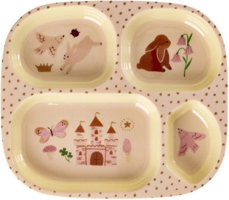 Mit diesem farbenfrohen Kinderteller verwandelst du jede Mahlzeit in ein kleines Abenteuer. Der ovale Teller mit dem bezaubernden Fairytale-Motiv lädt dein Kind dazu ein, beim Essen die Fantasie spielen zu lassen und macht das Essen zu einem echten Erlebnis. Die verspielten Märchenillustrationen schaffen eine einladende Atmosphäre am Tisch und sorgen dafür, dass selbst Gemüse und gesunde Snacks plötzlich viel interessanter wirken.Hergestellt aus hochwertigem Melamin, ist dieser Teller perfekt auf die Bedürfnisse von Familien mit kleinen Kindern abgestimmt. Melamin überzeugt durch seine außergewöhnliche Robustheit und Langlebigkeit – selbst wenn der Teller einmal auf den Boden fällt, bleibt er unbeschädigt. Das Material ist leicht, sodass dein Kind den Teller problemlos selbst handhaben kann, und es ist besonders pflegeleicht. Nach dem Essen lässt sich der Teller mühelos reinigen, ohne dass die leuchtenden Farben oder das charmante Design verblassen.