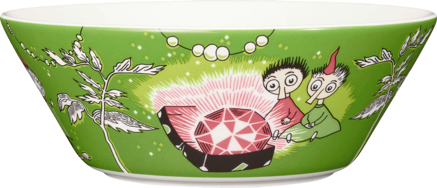 Diese zauberhafte Porzellanschüssel von Moomin Arabia bringt die märchenhafte Welt des Mumintals direkt in dein Zuhause. Mit einem Durchmesser von 15 cm zeigt sie die geheimnisvollen Charaktere Tofslen & Vifslen, die für ihren mysteriösen Rubin und ihre ganz eigene Sprache bekannt sind, die selbst die Bewohner des Mumintals kaum verstehen können.Das liebevoll gestaltete Design erzählt die berührende Geschichte dieser beiden kleinen Figuren, die im Mumital Geborgenheit finden, wo die fürsorgliche Mumimutter sie mit offenen Armen empfängt. Diese Schüssel vereint Tove Janssons magisches Universum mit praktischer Funktionalität und verwandelt jeden Moment des Alltags in ein kleines Abenteuer.