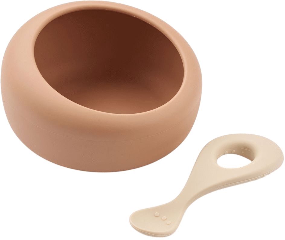 Der mitgelieferte Löffel ist sorgfältig mit einem Nylonkern entwickelt, der von weichem Silikon umgeben ist. Diese Kombination schafft die ideale Balance zwischen Funktionalität und Sicherheit. Der Löffel liegt gut in kleinen Händen und erleichtert es deinem Kind, das Essen vom Teller zum Mund zu führen.