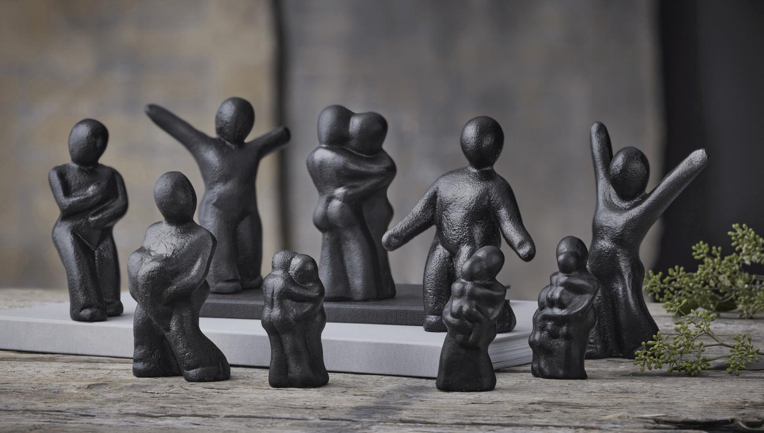 Das hochwertige Gusseisen verleiht der Skulptur eine besondere Schwere und einen charaktervollen Ausdruck, der die Tiefe der Botschaft unterstreicht. Die matte schwarze Oberfläche schafft einen sophistizierten Kontrast zu den helleren Elementen deines Zuhauses und fügt einen Hauch skandinavischer Eleganz zu deiner Einrichtung hinzu.