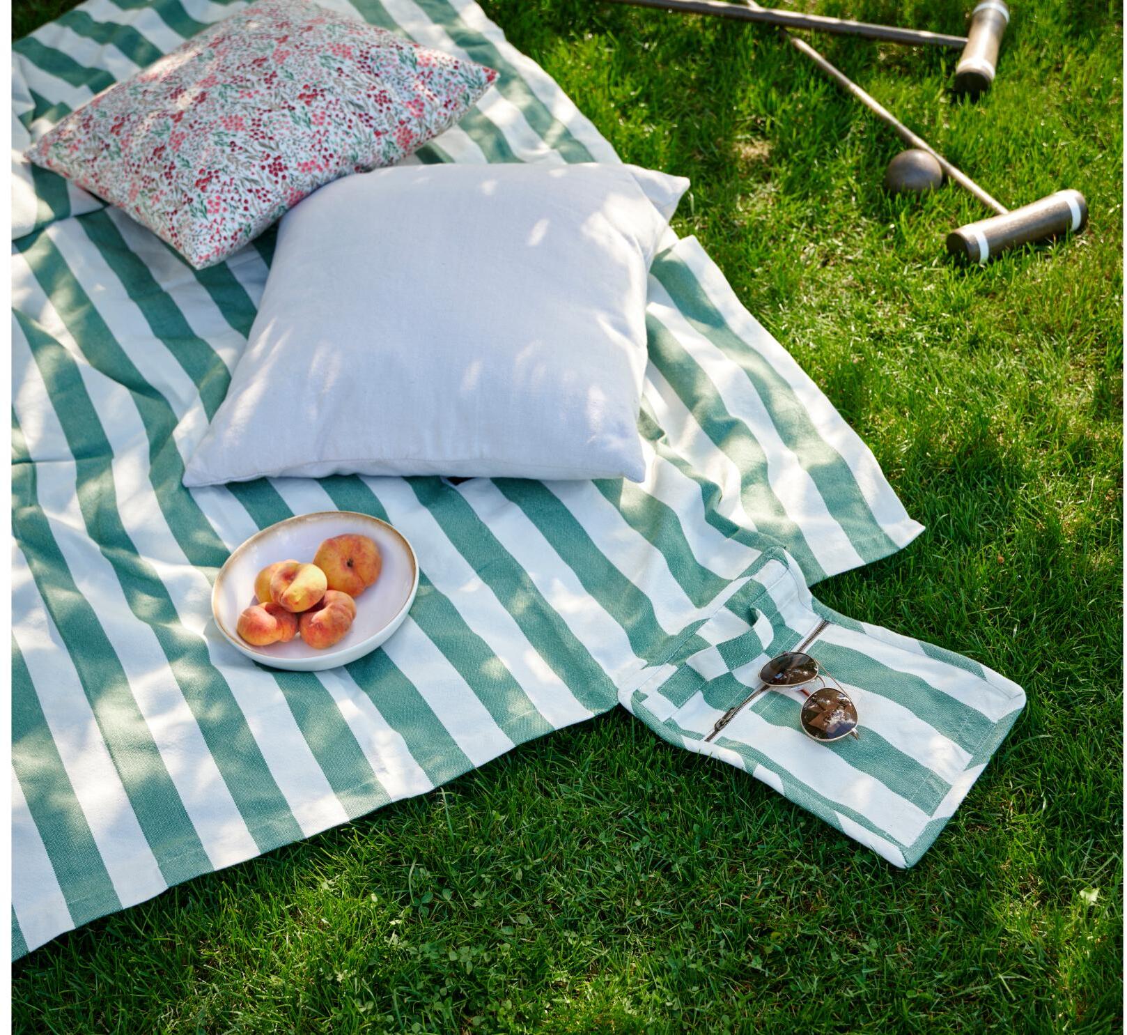 Mit der Södahl Statement Stripe Picknickdecke verwandelst du jeden Ausflug ins Freie in ein stilvolles Erlebnis. Die elegante grüne Nuance und das zeitlose Streifenmuster bringen skandinavische Ästhetik direkt in die Natur und schaffen eine harmonische Verbindung zwischen Design und Outdoor-Komfort.Diese hochwertige Picknickdecke aus robustem Spun-Polyester überzeugt durch ihre perfekte Balance zwischen Weichheit und Langlebigkeit. Das Material ist von Natur aus feuchtigkeits- und schmutzresistent, wodurch sich die Decke ideal für spontane Picknicks, entspannte Strandtage oder gemütliche Stunden im Garten eignet. Nach jedem Einsatz lässt sie sich mühelos reinigen und ist schnell wieder bereit für das nächste Abenteuer.