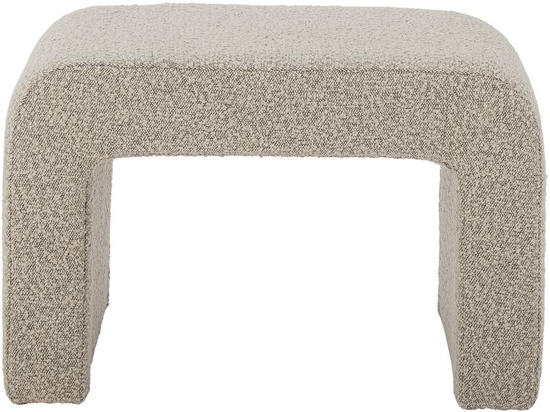 Die Textur des Bouclé-Stoffes verleiht dem Möbelstück sowohl visuelles Interesse als auch taktilen Komfort. Dieses beliebte Material ist für seine Langlebigkeit und die Fähigkeit bekannt, sein charakteristisches Aussehen über die Zeit zu bewahren, was den Hocker zu einer Investition in Stil und Funktionalität macht.
