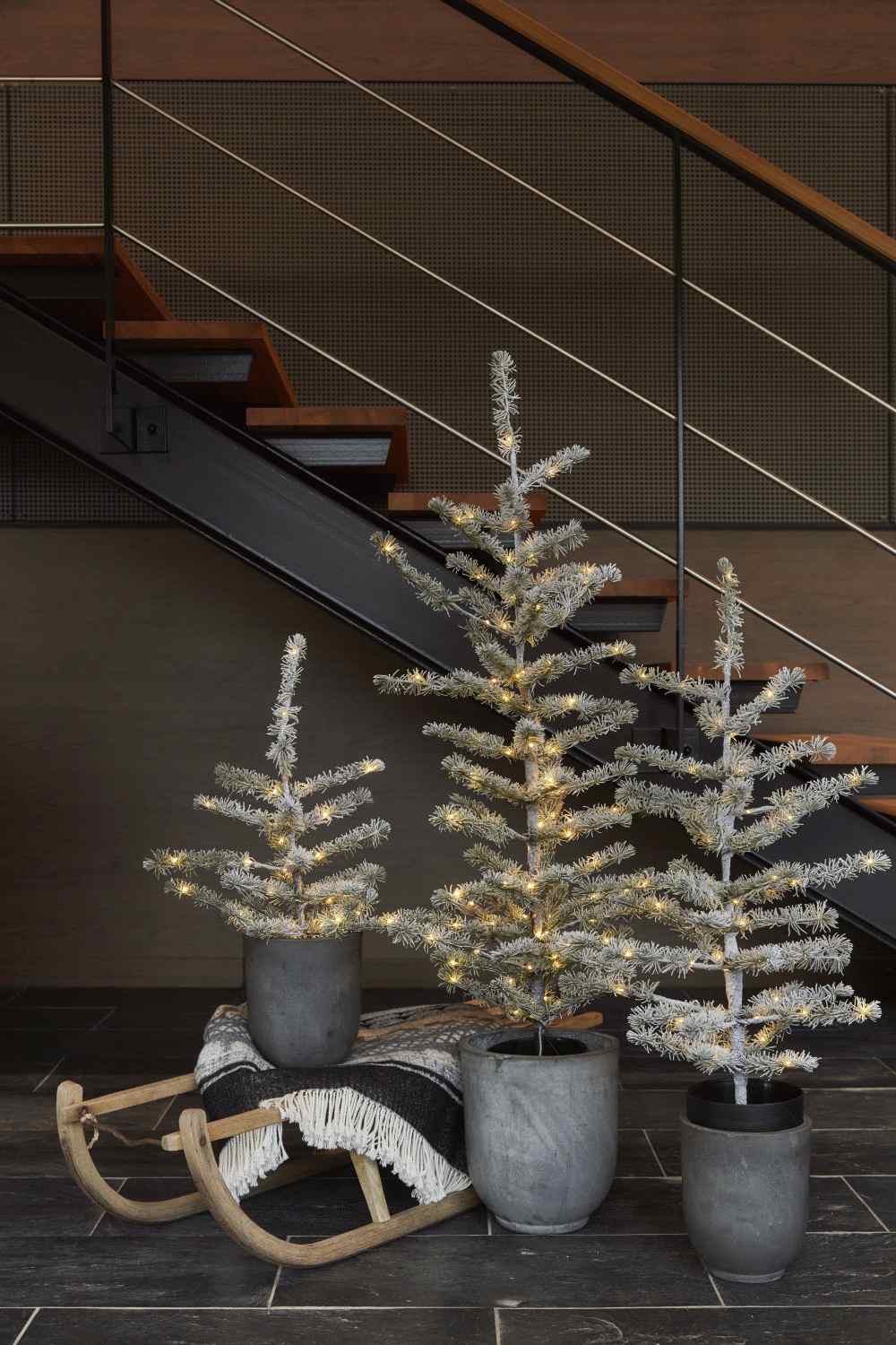 Mit seinen 120 Zentimetern Höhe und 44 Zentimetern Durchmesser nimmt Alfred genau den richtigen Platz ein, um Aufmerksamkeit zu erregen, ohne den Raum zu dominieren. Die integrierten LED-Lichter sind strategisch durch den gesamten Baum verteilt und verbreiten einen angenehmen, warmen Schein, der in jedem Raum für Weihnachtsstimmung sorgt. Der mitgelieferte schwarze Topf verleiht dem Baum ein stilvolles Fundament, das perfekt zu modernen Einrichtungen mit skandinavischem Design passt.