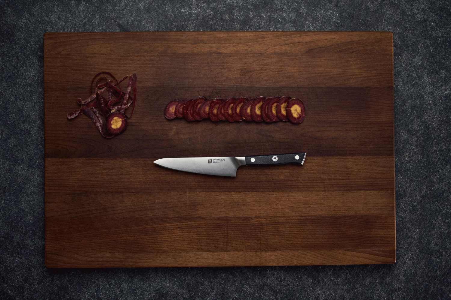 Die ZWILLING SPECTRUM-Serie verkörpert eine perfekte Balance zwischen Funktionalität und Design, bei der skandinavische Gestaltungsprinzipien auf deutsche Handwerkskunst treffen. Das schwarze Finish verleiht dem Messer einen modernen und eleganten Ausdruck, der sich nahtlos in jede Küchenumgebung einfügt. Micarta ist bekannt für seine Haltbarkeit und angenehme Oberfläche, die dir selbst unter feuchten Bedingungen einen sicheren Griff garantiert. Das ergonomische Design reduziert Ermüdungserscheinungen in Hand und Handgelenk, weshalb dieses Messer sowohl für Profiköche als auch für begeisterte Hobbyköche bestens geeignet ist.