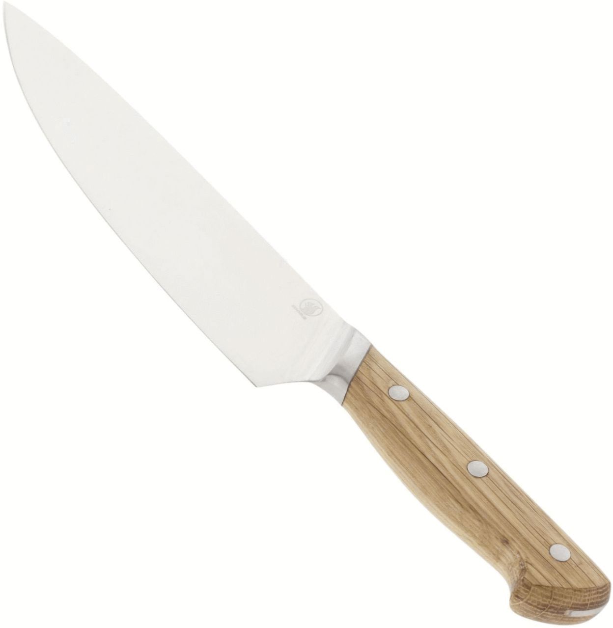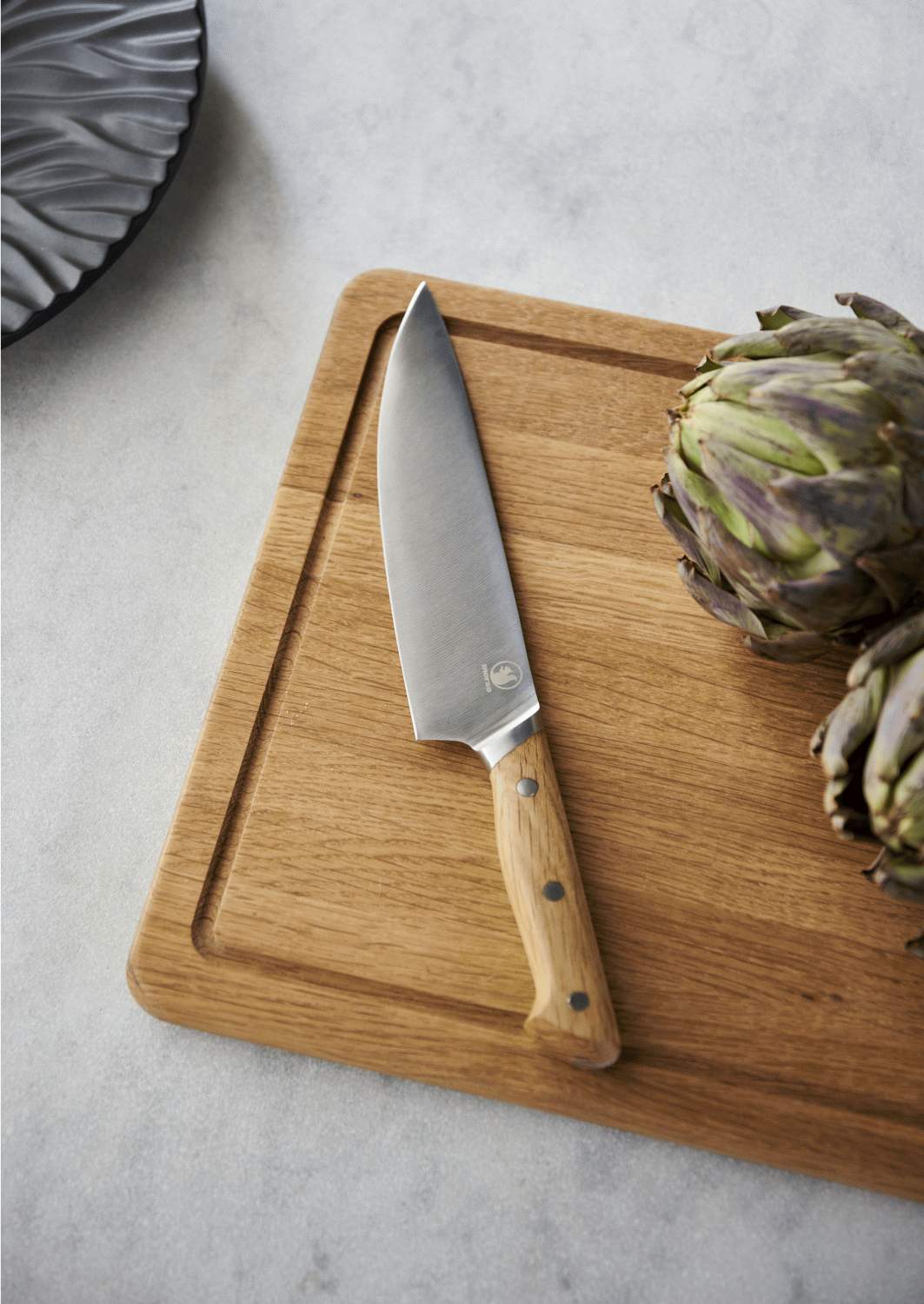 Dieses durchdachte Messer meistert mühelos alle täglichen Kochaufgaben – von der Filetierung von Fisch über das Zerlegen von Fleisch bis hin zum feinen Schneiden von Gemüse. Der ergonomische Griff aus einem zusammenhängenden Stück FSC®-zertifizierter Eiche (FSC-C166612) liegt perfekt in der Hand und reduziert Ermüdung auch bei längeren Kochsessions. Besonders reizvoll ist die natürliche Entwicklung des Holzgriffs: Mit der Zeit entsteht eine einzigartige Patina, die die Geschichte der vielen Mahlzeiten erzählt, bei denen das Messer im Einsatz war. Diese natürliche Alterung macht jedes Messer zu einem persönlichen Unikat.