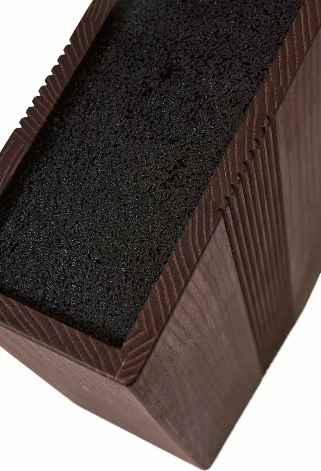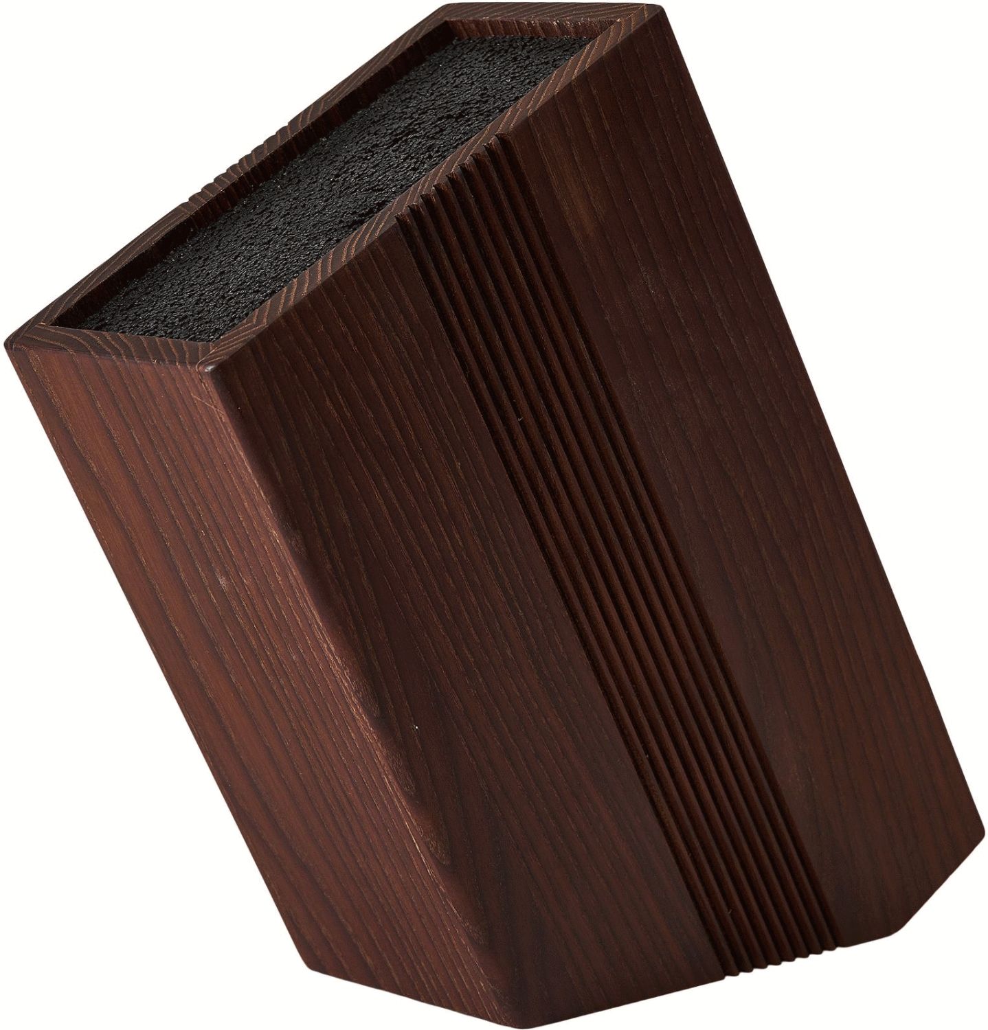 Das karbonisierte Eschenholz verleiht diesem Messerblock nicht nur seine ikonische dunkle Farbe, sondern auch eine einzigartige Textur, die jedes Stück zu einem individuellen Unikat macht. Die eleganten Rillen und subtilen Details schaffen einen wunderschönen Kontrast zum dunklen Holz und fügen dem Design eine sophisticated Dimension hinzu. Diese durchdachte Gestaltung macht den Messerblock zu mehr als nur einem praktischen Aufbewahrungsgegenstand – er wird zum stilvollen Statement-Piece in deiner Küche.