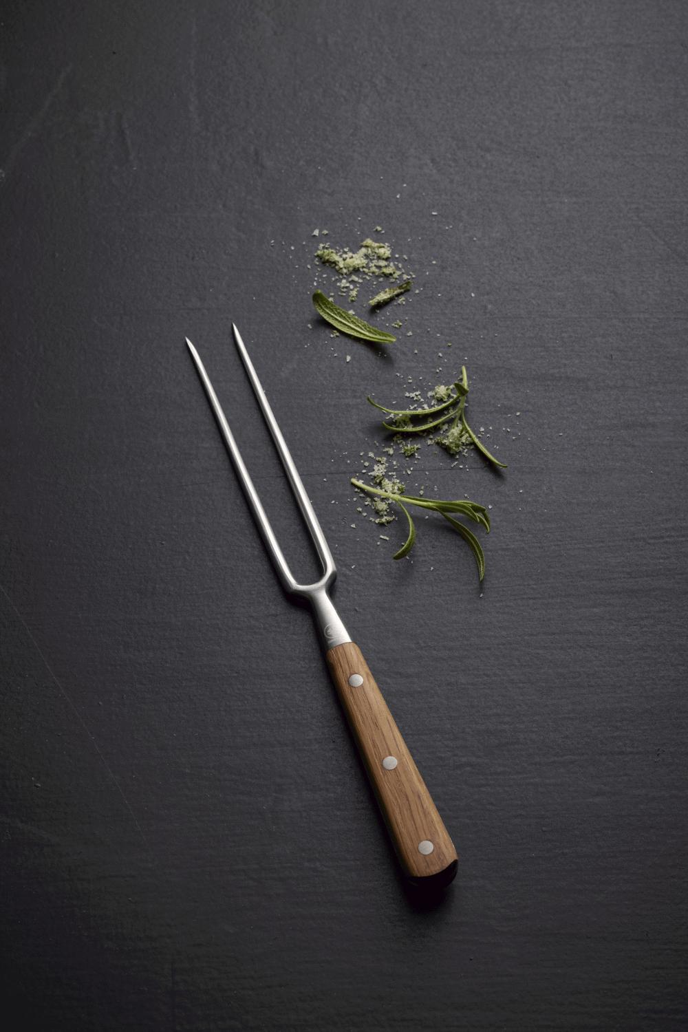 Die skandinavische Designtradition zeigt sich deutlich in den klaren Linien und der durchdachten Materialwahl dieser Bratengabel. Der Griff aus geölter Eiche ist nicht nur ästhetisch ansprechend, sondern auch ergonomisch geformt und liegt angenehm in deiner Hand. Mit der Zeit entwickelt das Eichenholz eine wunderschöne Patina, die die Geschichte der vielen Mahlzeiten erzählt, bei denen sie zum Einsatz kam – je häufiger du sie verwendest, desto schöner wird sie.