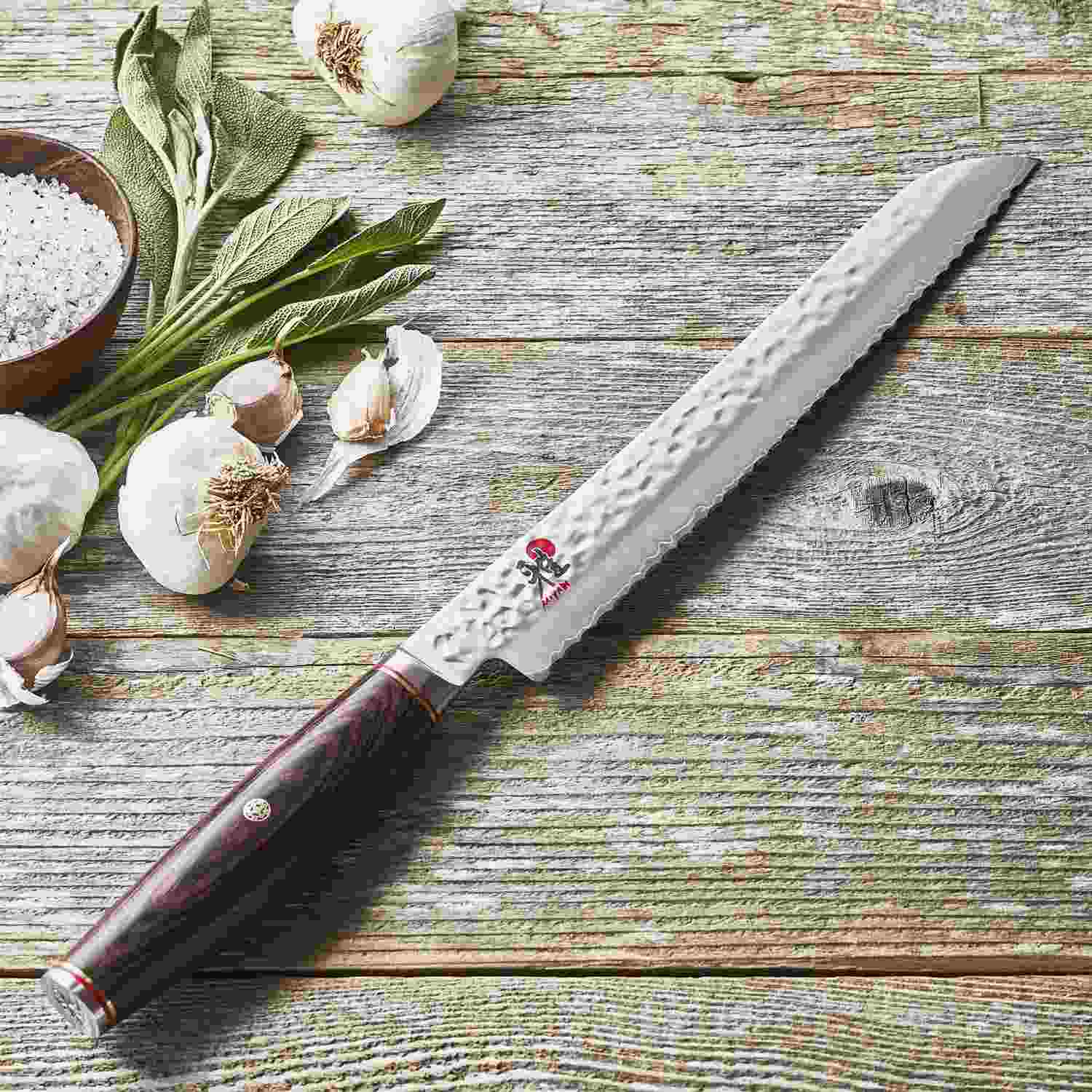Mit diesem professionellen Brotmesser aus der MIYABI 6000 MCT Serie holst du dir echte japanische Schmiedekunst in deine Küche. Die 23 cm lange, gezahnte Klinge meistert selbst die härtesten Brotkrusten, ohne das weiche Innere zu beschädigen – ein wahres Meisterwerk der Klingentechnologie.Das Herzstück dieses außergewöhnlichen Messers bildet ein ultraharter Pulverstahl-Kern, der zwischen zwei zusätzlichen Stahllagen eingebettet ist. Diese innovative Konstruktion garantiert dir optimale Stärke und außergewöhnliche Haltbarkeit. Besonders beeindruckend ist die charakteristische Hammertechnik, die der Klinge ihr einzigartiges visuelles Muster verleiht und gleichzeitig die Schneidleistung optimiert.