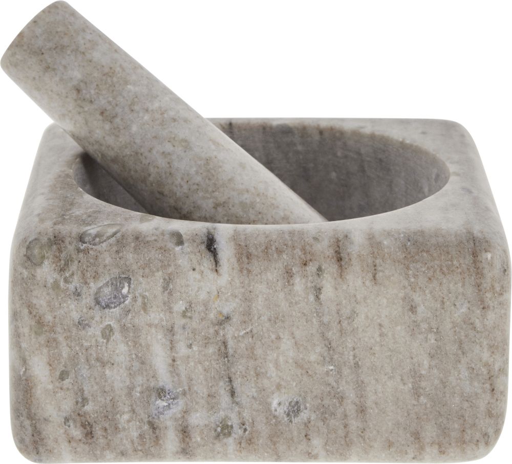 Mit diesem eleganten Mörser aus der Elina-Serie von Lene Bjerre verwandelst du die tägliche Zubereitung von Gewürzen und Kräutern in ein ästhetisches Erlebnis. Das quadratische Design verleiht dem klassischen Küchengerät einen modernen Twist, während der echte Marmor sowohl Haltbarkeit als auch Funktionalität für viele Jahre garantiert.Der Mörser ist aus echtem Marmor mit natürlichen Maserungen gefertigt, die jedes einzelne Stück zu einem Unikat machen. Die dunkle Sandfarbe fügt sich perfekt in moderne wie klassische Küchen ein, wo er sowohl als praktisches Werkzeug als auch als dekoratives Element fungiert. Das natürliche Gewicht des Marmors macht es dir leicht, selbst die härtesten Gewürze zu zerkleinern, während die glatte Oberfläche nach dem Gebrauch einfach zu reinigen ist.