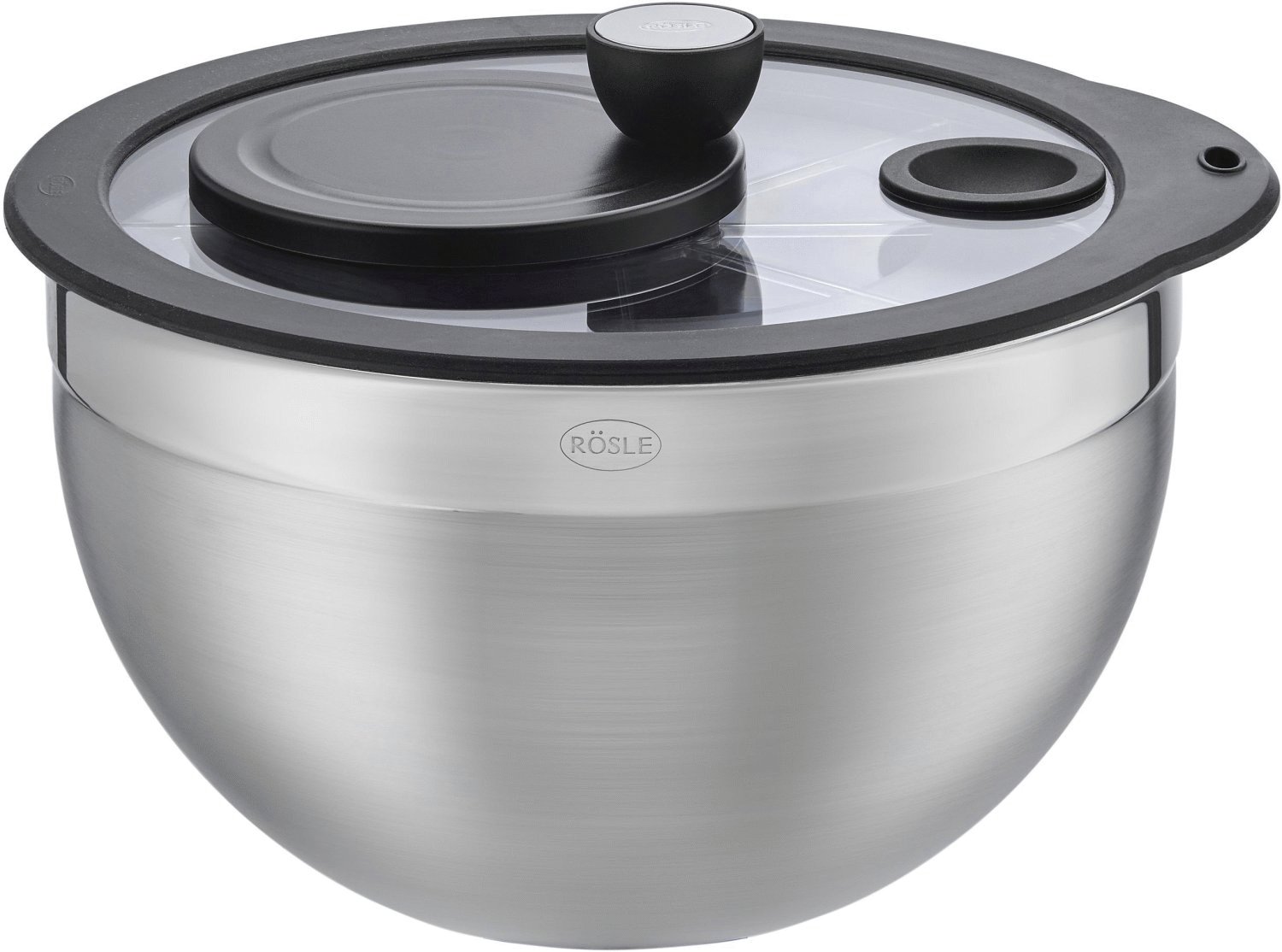 Diese innovative Salatschleuder von Rösle vereint elegantes Design mit praktischer Funktionalität und ermöglicht dir die mühelose Zubereitung frischer, knackiger Salate zu Hause. Die vielseitige 5,4-Liter-Salatschleuder in Stahl und Schwarz wurde mit Bedacht sowohl für Ästhetik als auch Benutzerfreundlichkeit entwickelt und macht sie zu einem unverzichtbaren Werkzeug in der modernen Küche.Die Salatschleuder besteht aus einer robusten Schüssel mit elegantem Glasdeckel, einem praktischen Korbeinsatz und einem durchdachten Drehmechanismus, der überschüssiges Wasser effektiv von deinem Gemüse entfernt. Das ergonomische Design ermöglicht es dir, die Schüssel stabil mit einer Hand zu halten, während du den Drehmechanismus mit der anderen bedienst - völlig mühelos.