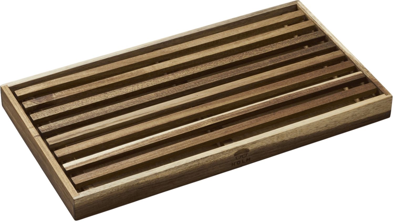 Mit diesem hochwertigen Brotschneidebrett aus Akazienholz bringst du skandinavische Eleganz und praktische Funktionalität in deine Küche. Das HOLM Schneidebrett vereint natürliche Schönheit mit durchdachtem Design und schafft den perfekten Rahmen sowohl für die Brotzubereitung als auch für das stilvolle Servieren.Das warme, goldene Farbspiel und die natürlichen Maserungen des Akazienholzes machen jedes Schneidebrett zu einem Unikat. Die Härte dieses edlen Holzes garantiert dabei außergewöhnliche Langlebigkeit bei täglichem Gebrauch. Besonders clever ist die integrierte Krümelrille, die Brotkrümel beim Schneiden zuverlässig auffängt und verhindert, dass sie sich über deine Arbeitsplatte ausbreiten.