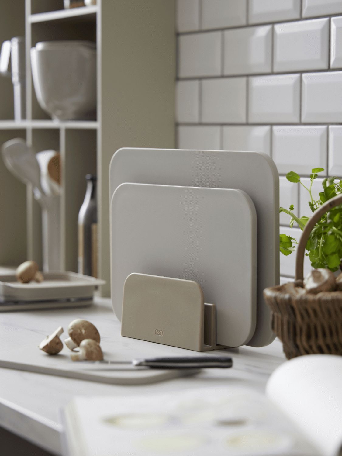 Die warme Humus-Farbe wurde sorgfältig ausgewählt, um moderne Kücheneinrichtungen zu ergänzen, während die sanft abgerundeten Formen den Brettern einen einladenden Charakter verleihen. Du kannst sie problemlos vom Küchentisch zum Esstisch bringen, wo sie perfekt zum Servieren von Brot, Käse, Aufschnitt oder Tapas-Arrangements geeignet sind.