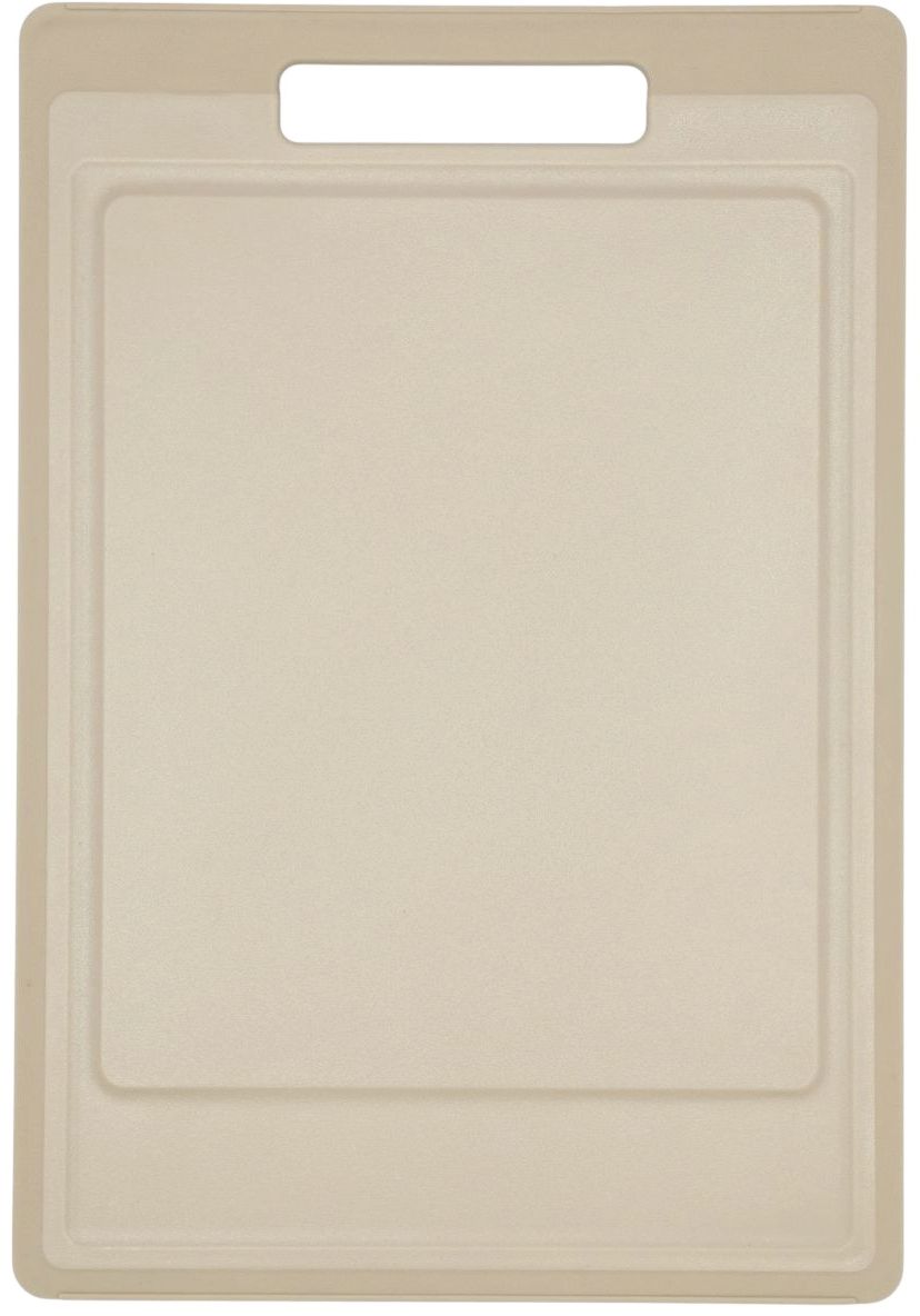 Dieses vielseitige beige Schneidebrett ist ein praktisches Werkzeug, das Funktionalität mit Haltbarkeit kombiniert und eine wertvolle Ergänzung für jede Küche darstellt.