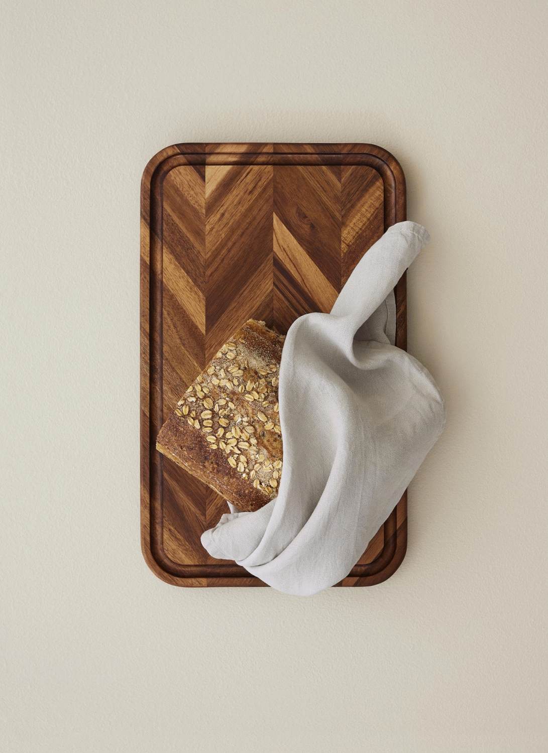 Mit diesem Spring Copenhagen Schneidebrett aus massiver Akazie holst du dir authentische skandinavische Handwerkskunst in deine Küche. Das charakteristische Fischgrätmuster des warmen Akazienholzes verleiht jedem Brett eine einzigartige Textur und bringt natürliche Eleganz in deinen Küchenalltag.Die natürliche Härte und Widerstandsfähigkeit des Akazienholzes macht dieses Schneidebrett zum perfekten Begleiter für den täglichen Gebrauch, während die wunderschöne Holzstruktur gleichzeitig als dekoratives Element auf deiner Arbeitsplatte fungiert. Die durchdachte Formgebung mit tiefer Saftrinne sorgt dafür, dass Fleischsäfte und Flüssigkeiten während der Zubereitung sicher aufgefangen werden - so bleibt deine Arbeitsplatte sauber und die Hygiene gewährleistet.