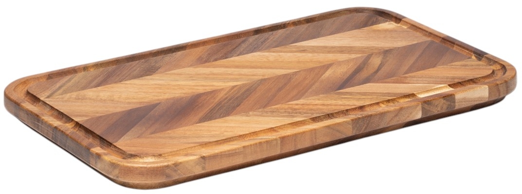 Die natürliche Härte und Widerstandsfähigkeit des Akazienholzes macht dieses Schneidebrett zum perfekten Begleiter für den täglichen Gebrauch, während die wunderschöne Holzstruktur gleichzeitig als dekoratives Element auf deiner Arbeitsplatte fungiert. Die durchdachte Formgebung mit tiefer Saftrinne sorgt dafür, dass Fleischsäfte und Flüssigkeiten während der Zubereitung sicher aufgefangen werden - so bleibt deine Arbeitsplatte sauber und die Hygiene gewährleistet.