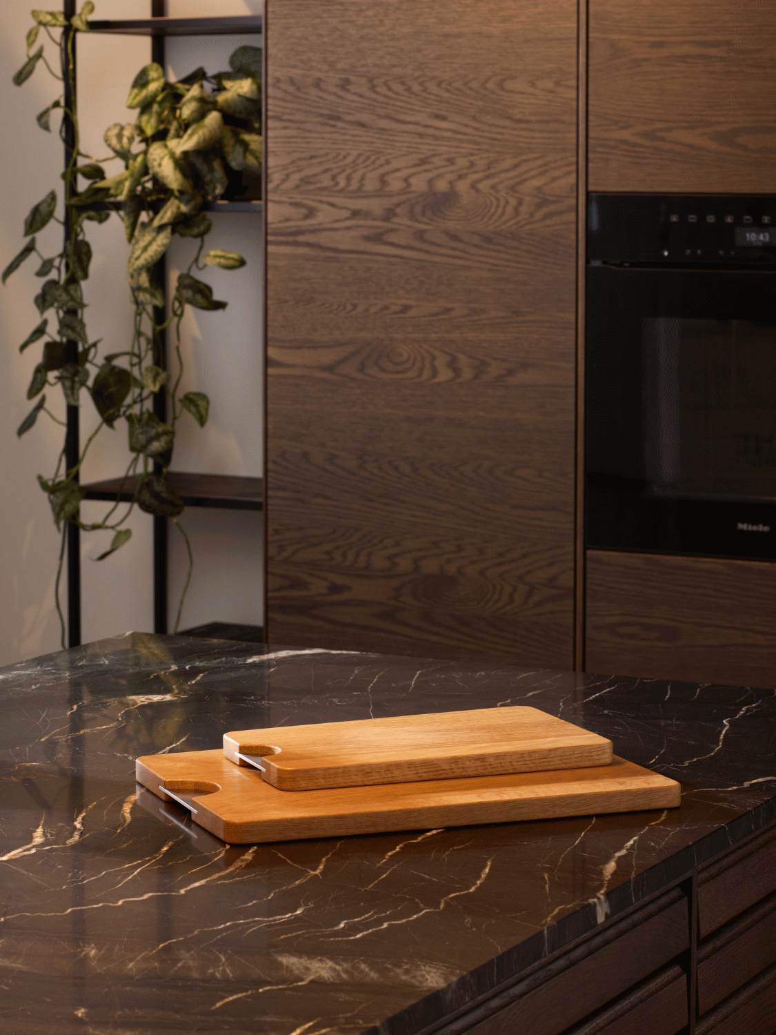 Das FSC-zertifizierte Eichenholz garantiert sowohl Langlebigkeit als auch Nachhaltigkeit. Die natürliche Härte und Dichte der Eiche macht das Brett ideal für den täglichen Gebrauch, während die wunderschöne Holzstruktur dafür sorgt, dass es als dekoratives Element in deiner Küche stehen kann. Die natürliche Variation des Eichenholzes bedeutet, dass jedes Brett einzigartig ist mit seinen eigenen Farbnuancen und Mustern.