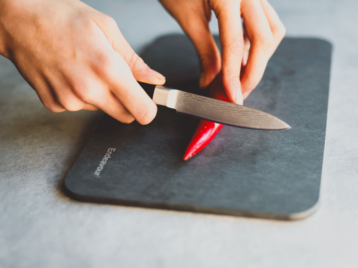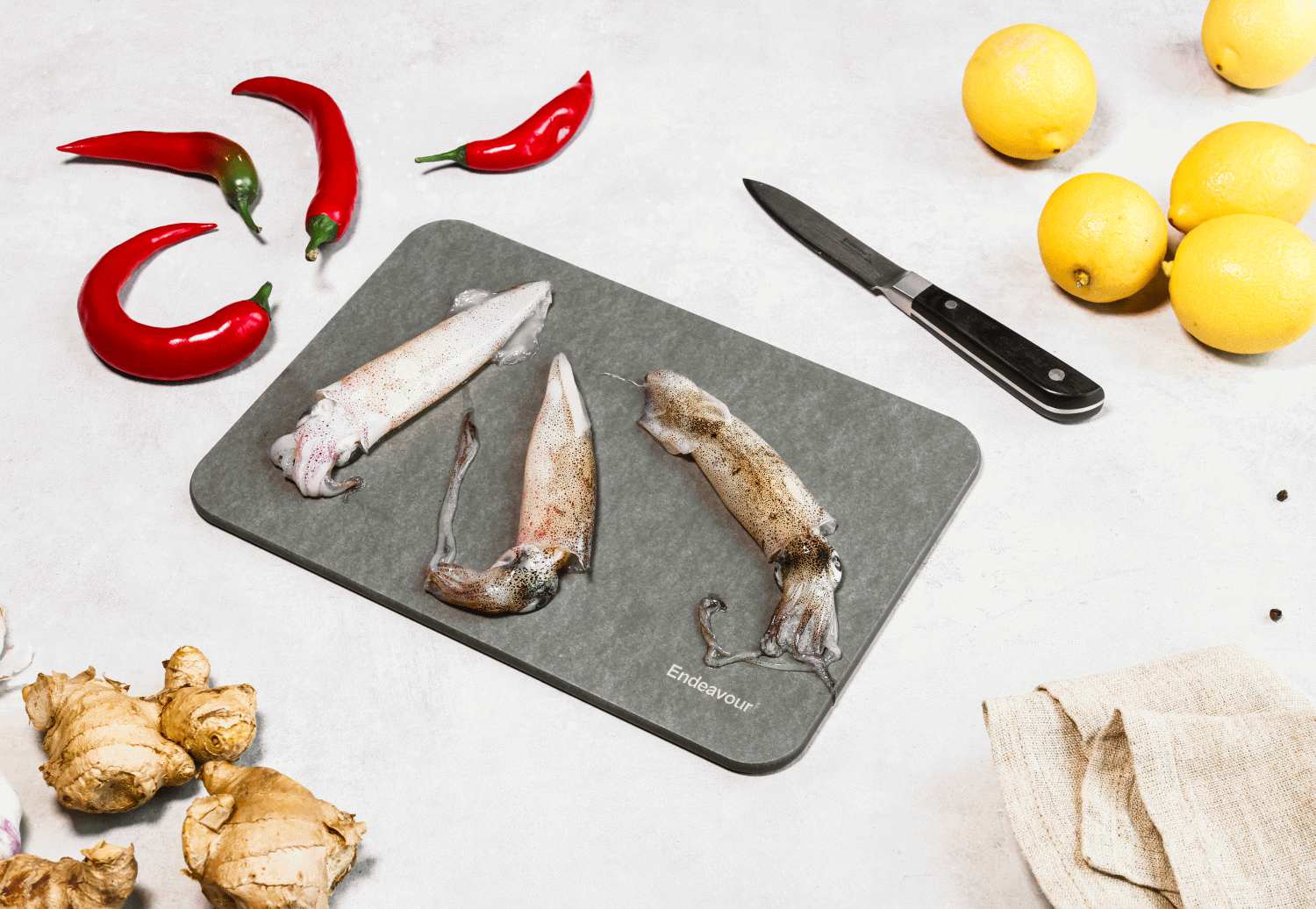 Endeavours einzigartiges Design ist gegen Nachahmung geschützt, was die Qualität und die durchdachte Entwicklung hinter diesem Produkt unterstreicht. Dieses Schneidebrett repräsentiert die perfekte Balance zwischen Funktionalität, Nachhaltigkeit und Ästhetik.