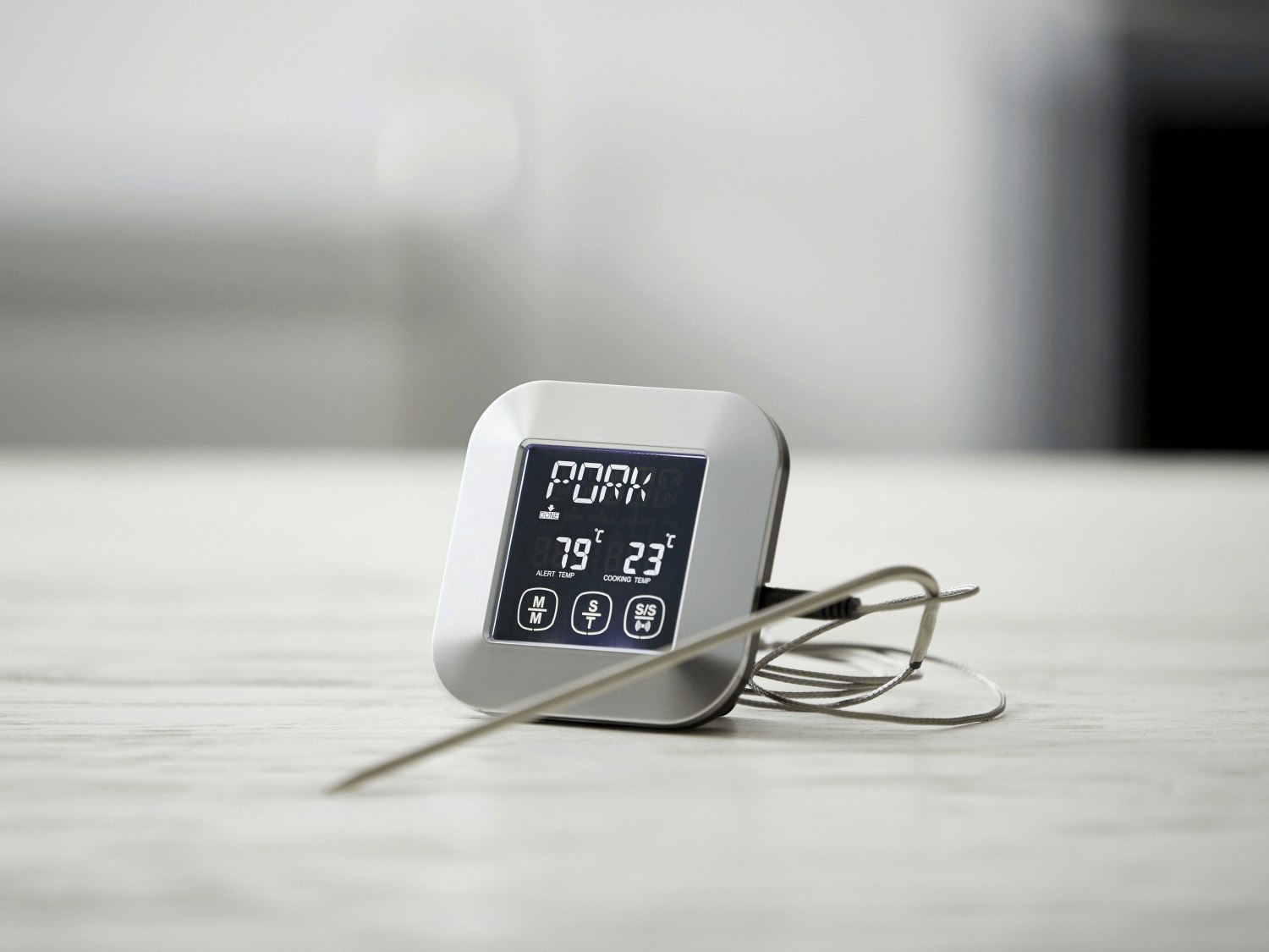 Die intelligente Kombination aus Temperaturmessung und Timer-Funktion macht dieses Thermometer zu einem unverzichtbaren Küchenhelfer. Während der integrierte Temperatursensor kontinuierlich die Kerntemperatur deines Fleisches überwacht, behältst du mit der praktischen Zeitschaltuhr die Zubereitungszeit im Blick. Sobald die gewünschte Temperatur erreicht ist, ertönt ein deutlicher Signalton – so wird nichts mehr zu lange gegart.