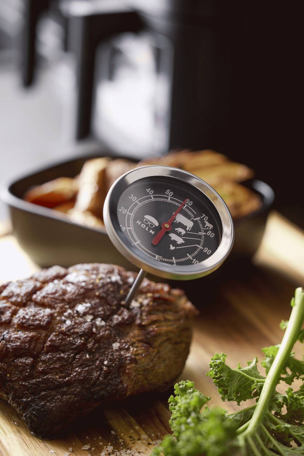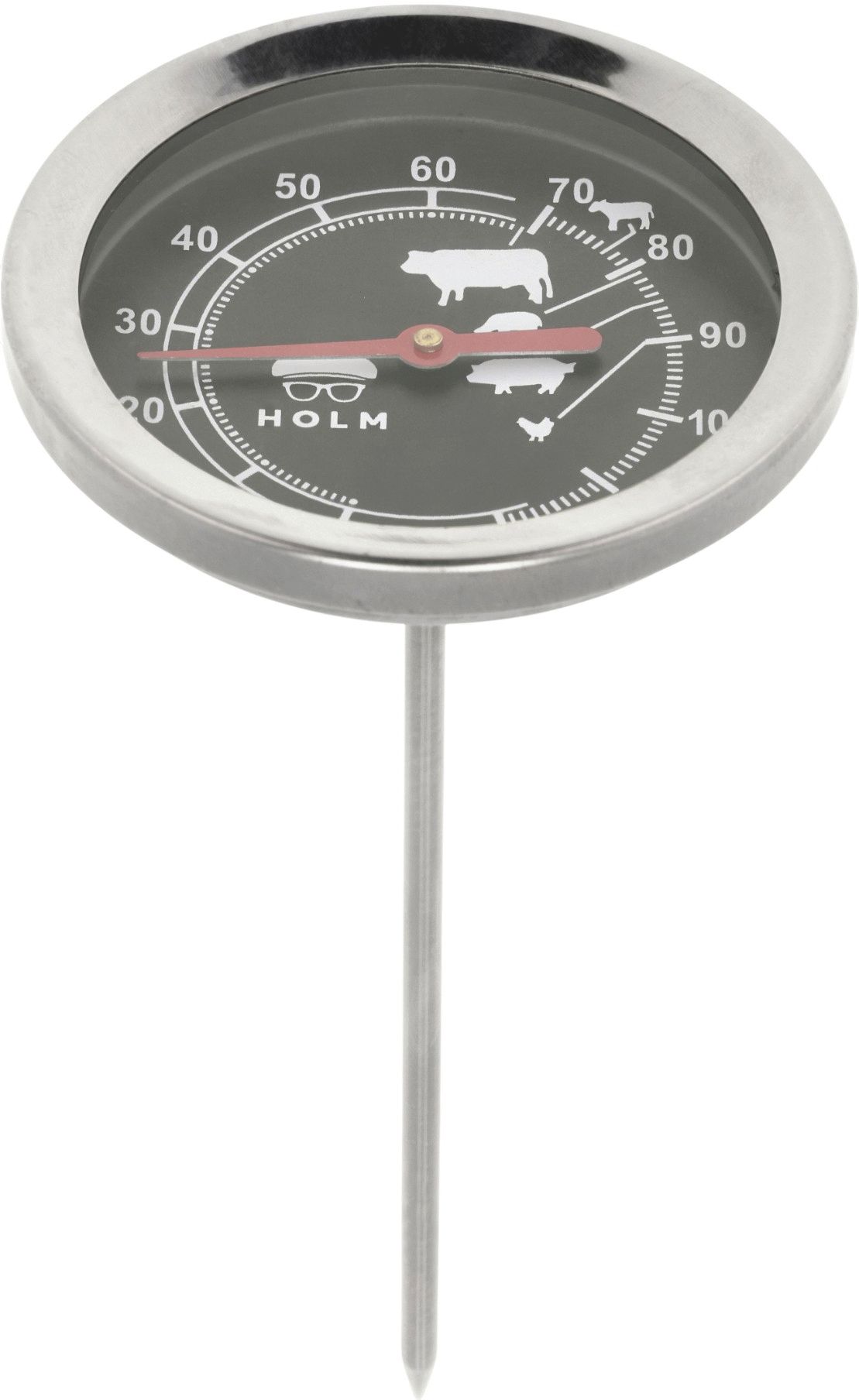 Mit diesem präzisen Bratthermometer von HOLM bringst du professionelle Genauigkeit in deine Küche und sicherst dir perfekte Garergebnisse bei jedem Kochvorgang. Das 7 cm große Thermometer aus hochwertigem Edelstahl überzeugt durch sein elegantes analoges Display und ermöglicht dir exakte Temperaturmessungen zwischen 0 und 120°C – ideal für Fleisch, Geflügel und andere Gerichte, bei denen der perfekte Garpunkt entscheidend ist.Die robuste Edelstahlkonstruktion garantiert nicht nur außergewöhnliche Langlebigkeit, sondern verleiht deinem Küchenequipment auch einen professionellen Touch. Das schlanke Messrohr dringt mühelos selbst in größere Braten ein, ohne dass wertvolle Fleischsäfte austreten. Dabei liefert das gut ablesbare analoge Display sofortige und zuverlässige Temperaturwerte.