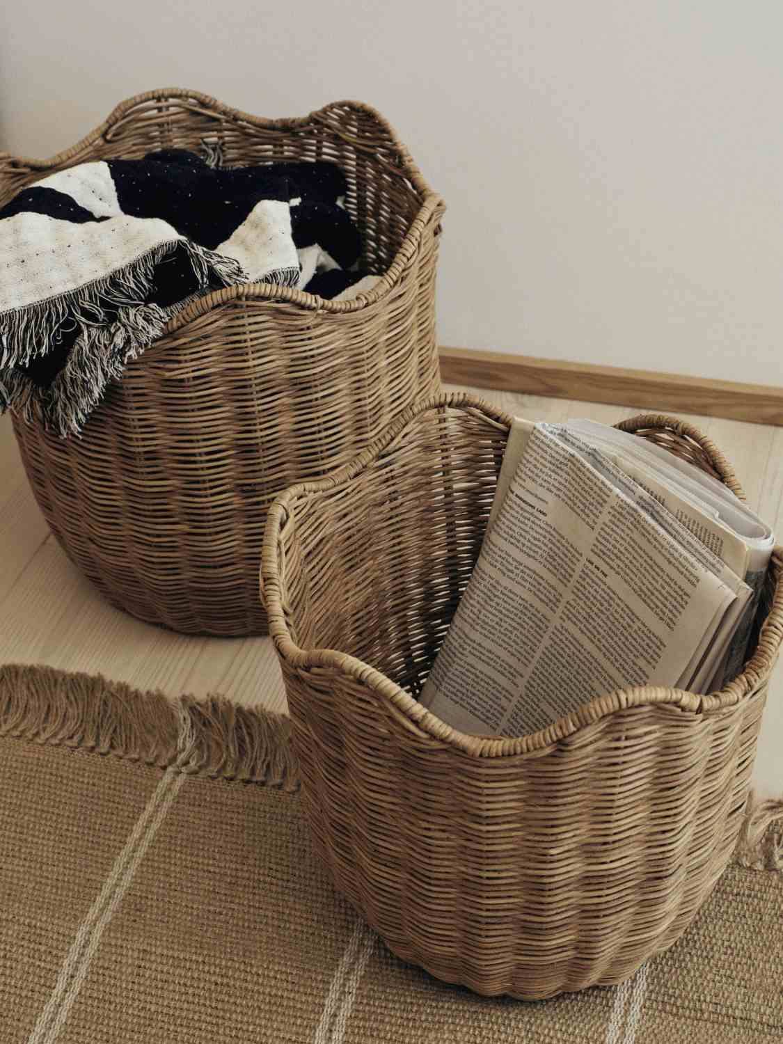 Du kannst die beiden Körbe flexibel einsetzen: frei auf dem Boden stehend, auf Regalen platziert oder als dekorative Elemente, die gleichzeitig für Ordnung sorgen. Die natürliche Patina des Rattans entwickelt sich im Laufe der Zeit wunderschön weiter und verleiht den Körben noch mehr Charme und Persönlichkeit. So investierst du in Aufbewahrungslösungen, die nicht nur heute, sondern auch in vielen Jahren noch Freude bereiten.