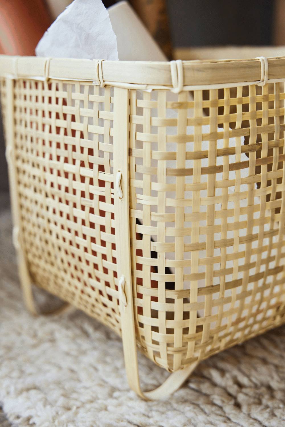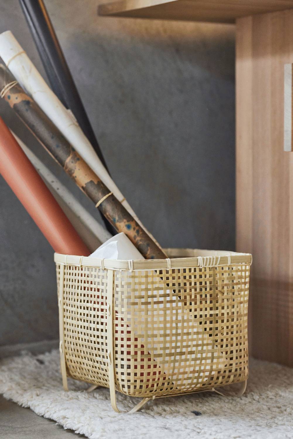 Das 100% Bambusmaterial verleiht den quadratischen Körben eine leichte und luftige Ausstrahlung, während die natürliche Textur interessante visuelle Akzente setzt. Die organische Struktur des Bambus bringt Wärme in deine Räume und schafft eine harmonische Balance zwischen Form und Funktion. Dank der robusten Handwerkskunst sind diese Körbe nicht nur optisch ansprechend, sondern auch langlebig und pflegeleicht.