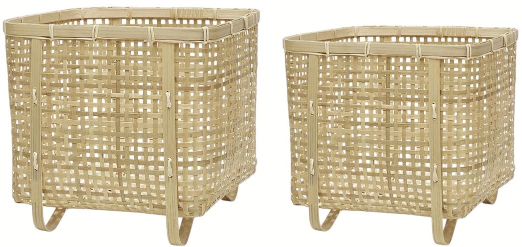 Diese handgeflochtenen Bambusflechtkörbe von OYOY vereinen natürliche Eleganz mit durchdachter Funktionalität und bringen skandinavische Designtradition in dein Zuhause. Das 2er-Set Sporta Körbe überzeugt durch nachhaltige Materialwahl und zeitlose Ästhetik, die sich mühelos in jeden Wohnstil integriert.Das 100% Bambusmaterial verleiht den quadratischen Körben eine leichte und luftige Ausstrahlung, während die natürliche Textur interessante visuelle Akzente setzt. Die organische Struktur des Bambus bringt Wärme in deine Räume und schafft eine harmonische Balance zwischen Form und Funktion. Dank der robusten Handwerkskunst sind diese Körbe nicht nur optisch ansprechend, sondern auch langlebig und pflegeleicht.