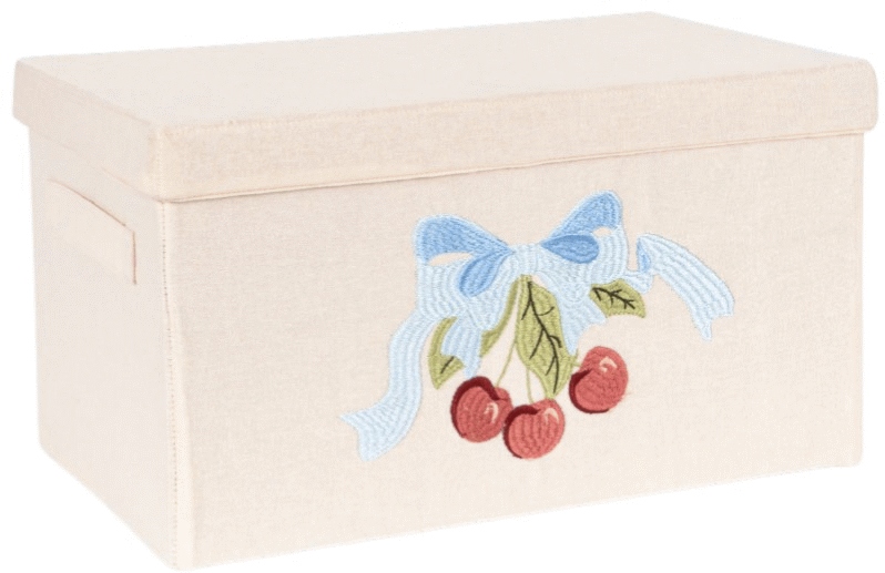 Diese charmante Aufbewahrungskiste von Konges Sløjd vereint Funktionalität mit dem charakteristischen skandinavischen Design, für das die Marke bekannt ist. Mit ihren warmen Cherry-Nuancen und praktischen Abmessungen von 38×23 cm schafft sie Ordnung und Gemütlichkeit im Kinderzimmer, während sie gleichzeitig ein wunderschönes Designelement zur Einrichtung hinzufügt.Die Aufbewahrungskiste ist aus weicher Baumwolle mit Pappe als stabilisierendem Element gefertigt, was ihr eine perfekte Balance zwischen Haltbarkeit und Flexibilität verleiht. Die robuste Konstruktion sorgt dafür, dass die Kiste alles von Spielzeug und Büchern bis hin zu Kleidung und anderen Kinderbedürfnissen aufnehmen kann, während das leichte Material sie einfach zu bewegen macht, je nach Bedarf.