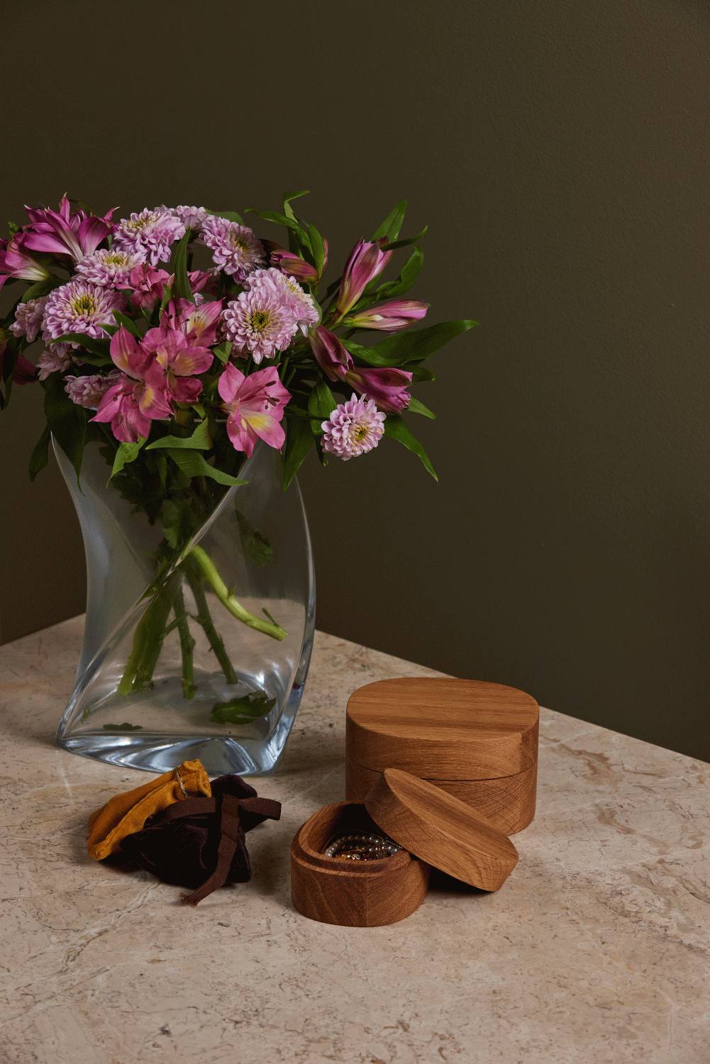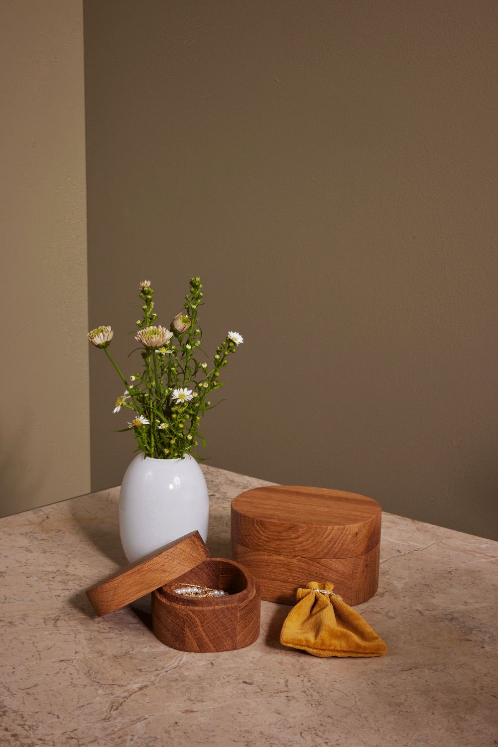 Die diskrete Größe macht sie ideal für Schlafzimmer, Flur oder Büro, wo sie sowohl als praktische Lösung als auch als dekoratives Element fungiert. Das zeitlose Design fügt sich natürlich in moderne skandinavische Wohnräume ein, wo Einfachheit und Funktionalität geschätzt werden. Das massive Eichenholz entwickelt mit der Zeit eine wunderschöne Patina, die deine Box noch charaktervoller und persönlicher macht.