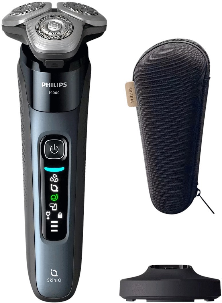 Mit diesem elektrischen Rasierer der Philips Series i9000 bringst du modernste Technologie und skandinavisches Design in dein Badezimmer. Das elegante taubenblau Design vereint Funktionalität mit Ästhetik und macht die tägliche Rasur zu einem besonderen Erlebnis. Die intelligente SkinIQ-Technologie fungiert als das Gehirn des Geräts und nutzt KI-gesteuerte Sensoren, um deine Haut in Echtzeit zu analysieren.Der innovative Power Adapt-Sensor erkennt die Dichte deines Bartes und passt automatisch die Motorkraft an, während der Bewegungskontrollsensor optimalen Kontakt zwischen den Scherköpfen und deiner Haut gewährleistet. Diese smarte Anpassung garantiert dir eine komfortable Rasur, egal ob du die Nass- oder Trockenrasur bevorzugst.