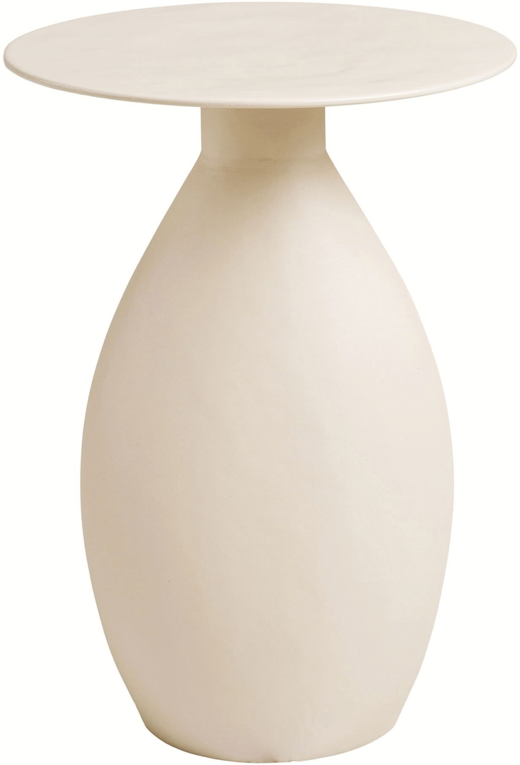 Das Herzstück dieses Beistelltisches ist seine Konstruktion aus robustem Metall, das mit einem hochwertigen Emaille-Finish veredelt wurde. Diese Oberfläche verleiht dem Tisch nicht nur eine glatte, gleichmäßige Textur, sondern ist auch besonders pflegeleicht und langlebig. Der helle Off-White-Ton strahlt Frische aus und lässt sich problemlos mit bestehenden Einrichtungselementen kombinieren, ohne dabei aufdringlich zu wirken.