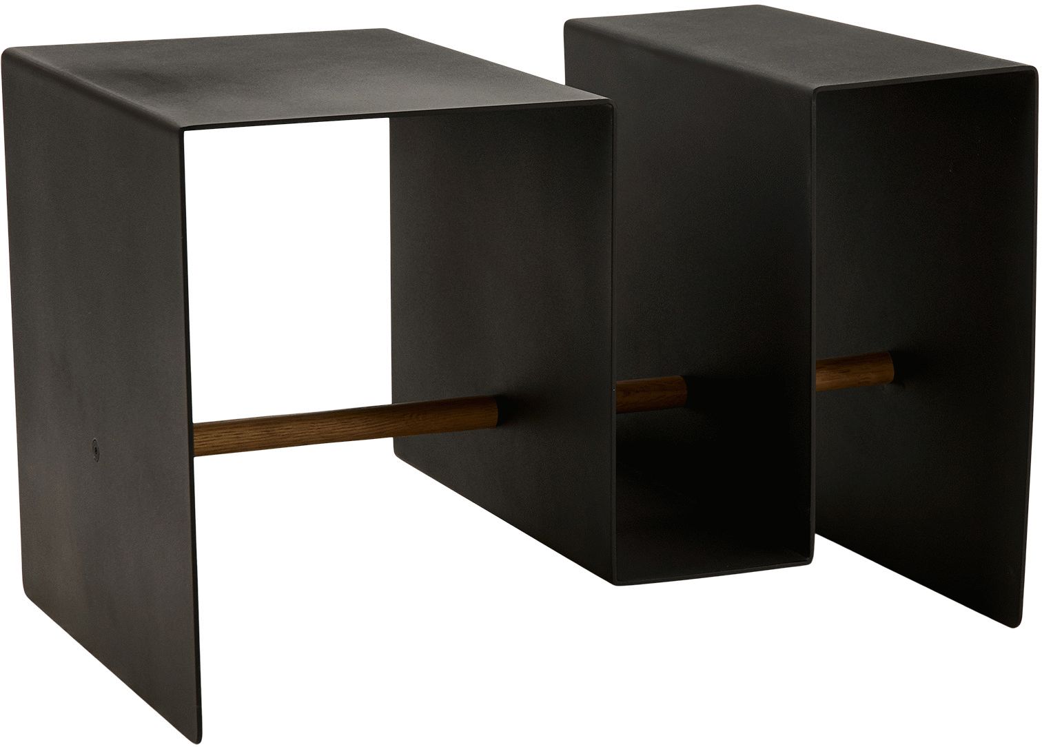 Die Konstruktion aus pulverbeschichtetem Metall überzeugt durch scharfe Linien und kantige Details, die einen rohen und grafischen Look schaffen. Eine elegante Eichenstab-Einlage bildet einen reizvollen Kontrast zum industriellen Metall und verleiht dem Möbelstück Charakter, ohne dabei den Raum zu dominieren. Diese durchdachte Materialkomposition zeigt die hohe Handwerkskunst und das innovative Design, für das skandinavische Möbel geschätzt werden.