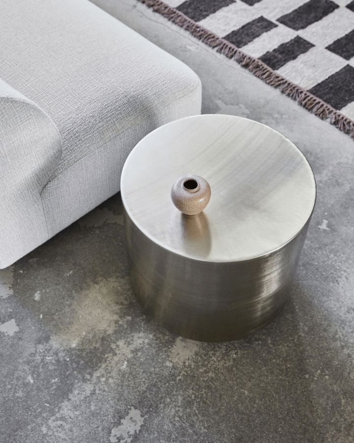 Mit dem Step Couchtisch von House Doctor holst du dir ein skulpturales Designstück ins Haus, das funktionale Eleganz mit künstlerischem Ausdruck vereint. Die zylindrische Form verleiht diesem Tisch eine markante Präsenz, die sofort ins Auge fällt und deinem Wohnzimmer oder Lounge-Bereich eine moderne, anspruchsvolle Note gibt. Gefertigt aus hochwertigem Eisen mit einer gebürsteten Silberoberfläche, besticht der Step durch seine raffinierte Optik mit subtilen Nuancen. Die gebürstete Behandlung erzeugt einen sanften Glanz, der das Licht auf elegante Weise einfängt und dem metallischen Ausdruck zusätzliche Tiefe verleiht.Mit seinen kompakten Maßen – 50 cm im Durchmesser und 45,5 cm in der Höhe – fügt sich dieser Couchtisch perfekt in kleinere Räume ein oder ergänzt bestehende Möbelgruppen auf stilvolle Weise. Die zylindrische Konstruktion macht den Step zu weit mehr als nur einer praktischen Ablagefläche: Er ist ein skulpturales Element, das die Ästhetik deines Raumes hebt. Die harmonische Balance zwischen grafischer Klarheit und organischer Form macht ihn zu einer vielseitigen Wahl, die sich sowohl in moderne als auch industrielle und skandinavische Einrichtungsstile nahtlos einfügt.