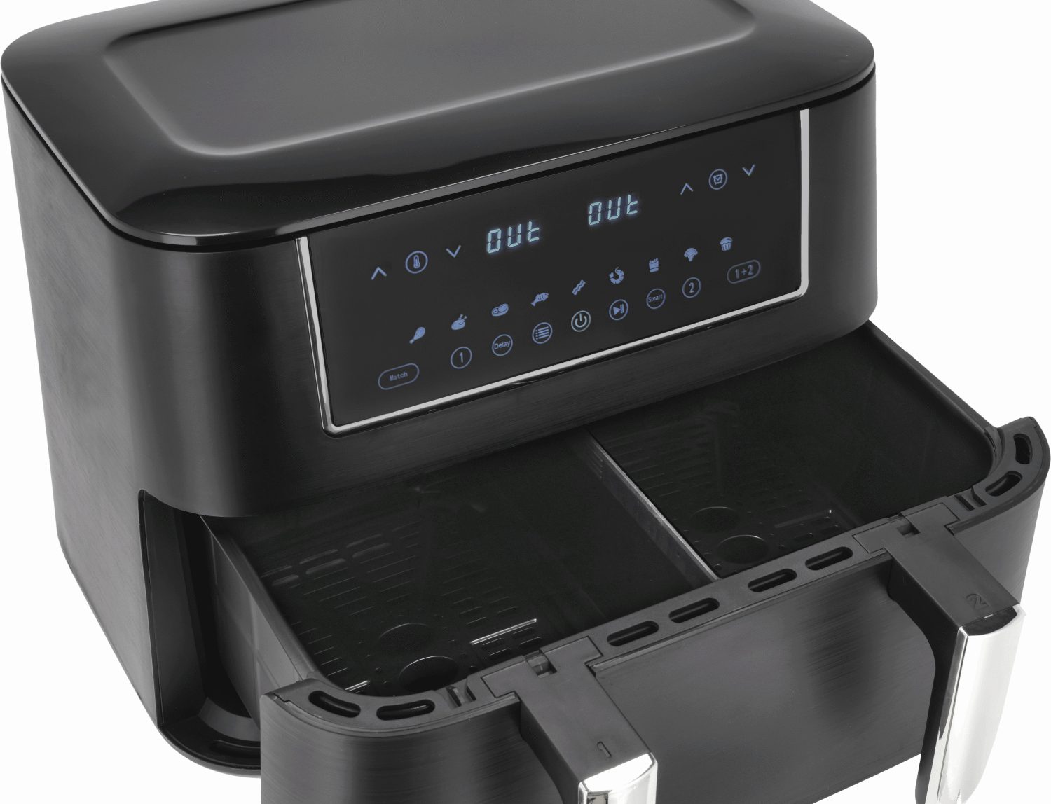 Das elegante schwarz-silberne Finish fügt sich nahtlos in jede zeitgemäße Kücheneinrichtung ein, während die beeindruckende Kapazität von 9,4 Litern alles von alltäglichen Mahlzeiten bis hin zu größeren Familienfesten mühelos bewältigt. Die innovative Schublade ist mit einem praktischen Trennfach ausgestattet, das dir ermöglicht, verschiedene Zutaten gleichzeitig zuzubereiten, ohne dass sich Geschmäcker und Aromen vermischen.