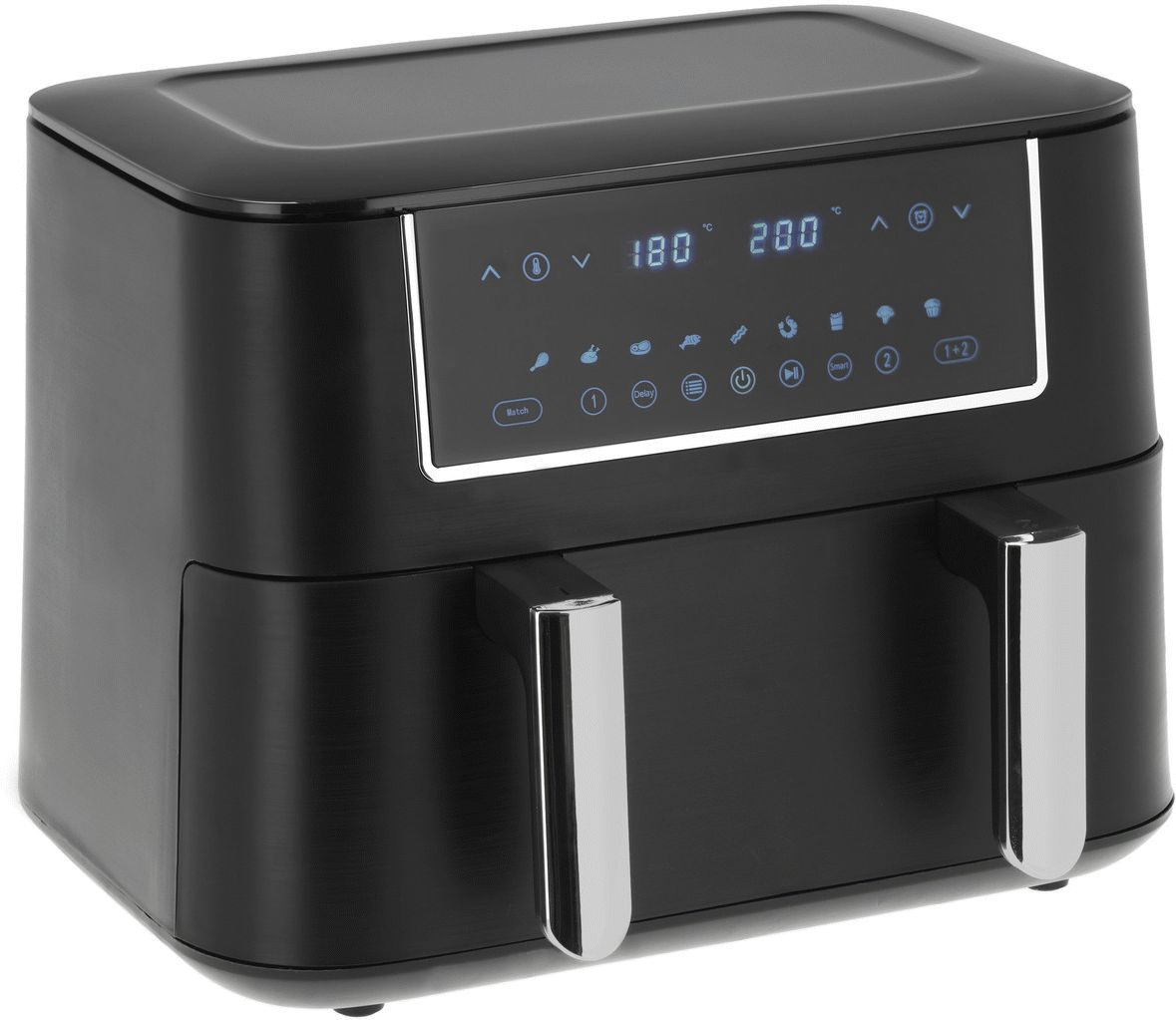 Mit dieser geräumigen Heißluftfritteuse revolutionierst du deine Küche und bereitest gesunde, knusprige Gerichte mit minimalem Ölverbrauch zu. Die Nordic Sense Airfryer 9,4 L vereint fortschrittliche Luftfrittiertechnik mit intelligentem skandinavischem Design und liefert professionelle Ergebnisse für dein modernes Zuhause.Das elegante schwarz-silberne Finish fügt sich nahtlos in jede zeitgemäße Kücheneinrichtung ein, während die beeindruckende Kapazität von 9,4 Litern alles von alltäglichen Mahlzeiten bis hin zu größeren Familienfesten mühelos bewältigt. Die innovative Schublade ist mit einem praktischen Trennfach ausgestattet, das dir ermöglicht, verschiedene Zutaten gleichzeitig zuzubereiten, ohne dass sich Geschmäcker und Aromen vermischen.