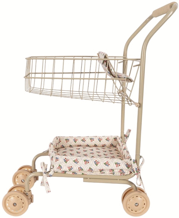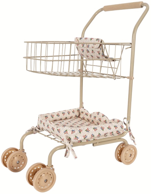 Mit diesem bezaubernden Spiel-Einkaufswagen von Konges Sløjd im wunderschönen Verona Blues Design können kleine Kinder die Einkaufstouren der Erwachsenen auf authentischste Weise nachahmen. Die drehbaren Vorderräder lassen den Wagen mühelos über den Boden gleiten, während dein Kind motorische Fähigkeiten und fantasievolle Spielideen entwickelt.Die durchdachte Konstruktion vereint langlebigen Eisenstahl mit weichem Baumwollstoff und gewährleistet sowohl Stabilität als auch Komfort während des Spielens. Das elegante blaue Muster der Verona Blues-Serie verleiht jedem Kinderzimmer oder Spielbereich eine stilvolle Note, während die praktische Größe perfekt für kleine Hände geeignet ist.