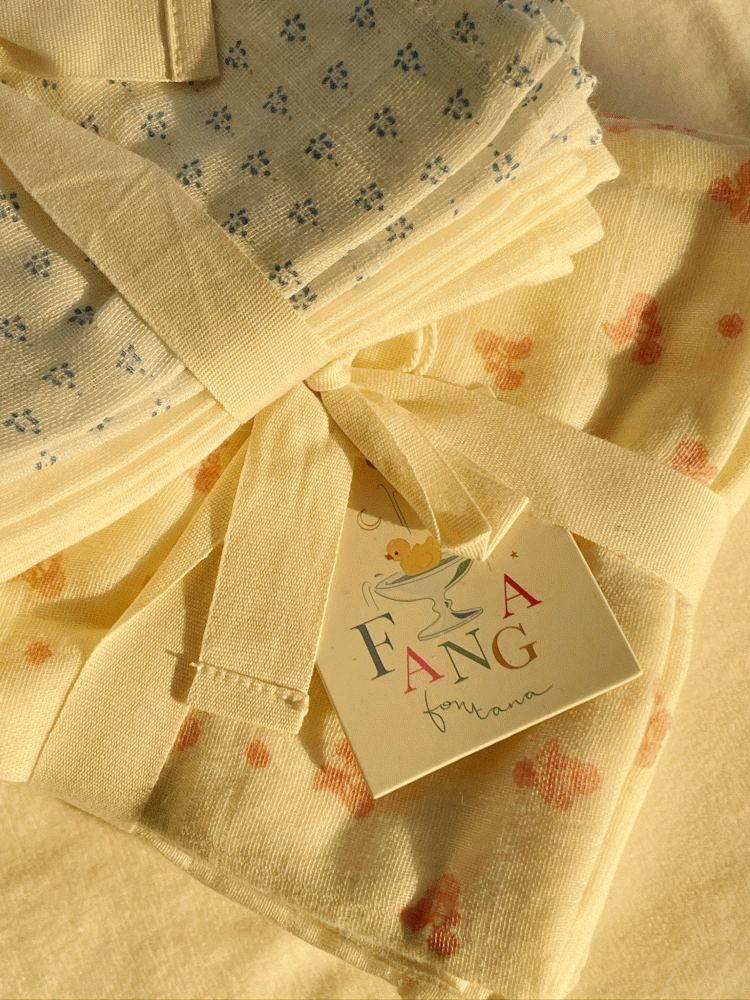 Mit diesem hochwertigen 3er-Set Mulltücher von Fanga Fontana Bellini erhältst du die perfekte Kombination aus ultimativer Weichheit und praktischer Funktionalität für die tägliche Pflege deines Babys. Diese drei exklusiven Mulltücher sind aus 100% zertifizierter Bio-Baumwolle gefertigt und gewährleisten die schonendste Behandlung der empfindlichen Babyhaut.Die wunderschöne Ilmia-Farbe verleiht diesen Mulltüchern einen eleganten und zeitlosen Ausdruck, der perfekt in jedes moderne Zuhause passt. Mit ihrer großzügigen Größe von 65x65 cm bieten diese Stoffwindeln ausreichend Platz für alle täglichen Bedürfnisse – vom Wickeln über das Stillen bis hin zum Schutz beim Spielen und Ausruhen.