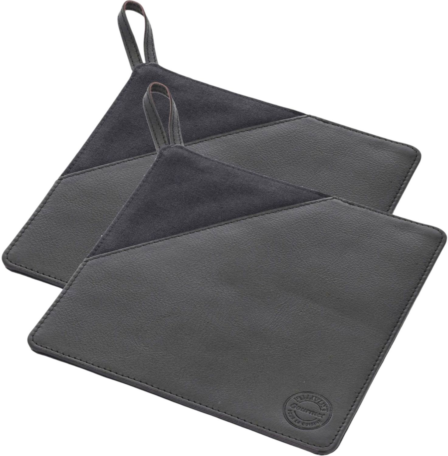 Pillivuyt Gourmet Topflappen 2er Set 20,5x20,5 cm, Schwarzes Canvas/Leder