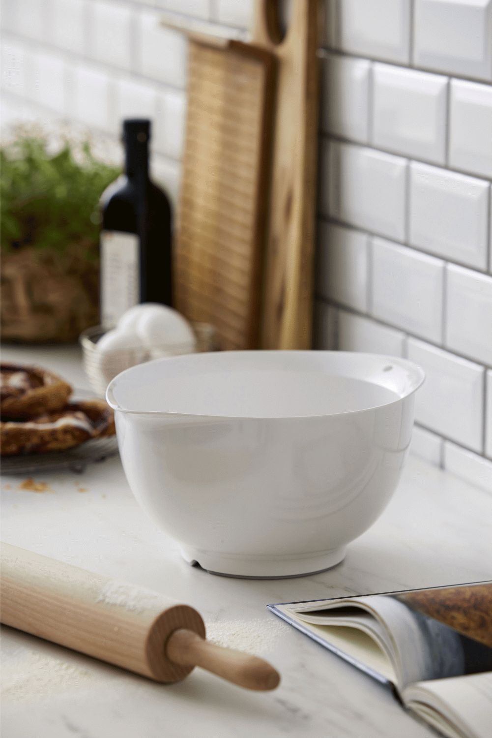 Mit dieser Victoria Rührschüssel von Rosti holst du dir die neueste Innovation in der Küchentechnik nach Hause, die auf dem berühmten dänischen Designklassiker, der Margrethe-Schüssel, aufbaut. Die 3-Liter-Kapazität in klassischem Weiß vereint zeitlose Eleganz mit moderner Funktionalität und macht diese Schüssel zu einem unverzichtbaren Werkzeug für deine tägliche Küchenarbeit.Das durchdachte Design dieser Rührschüssel berücksichtigt sowohl Ästhetik als auch praktische Anwendung. Die raffinierten Griffe und der praktische Ausgießer sind für bessere Handhabung optimiert, während die innovativen Drainagekanäle am Boden dafür sorgen, dass überschüssige Flüssigkeit mühelos entfernt werden kann – ein Detail, das deine Erfahrung beim Backen und Kochen wirklich verbessert.