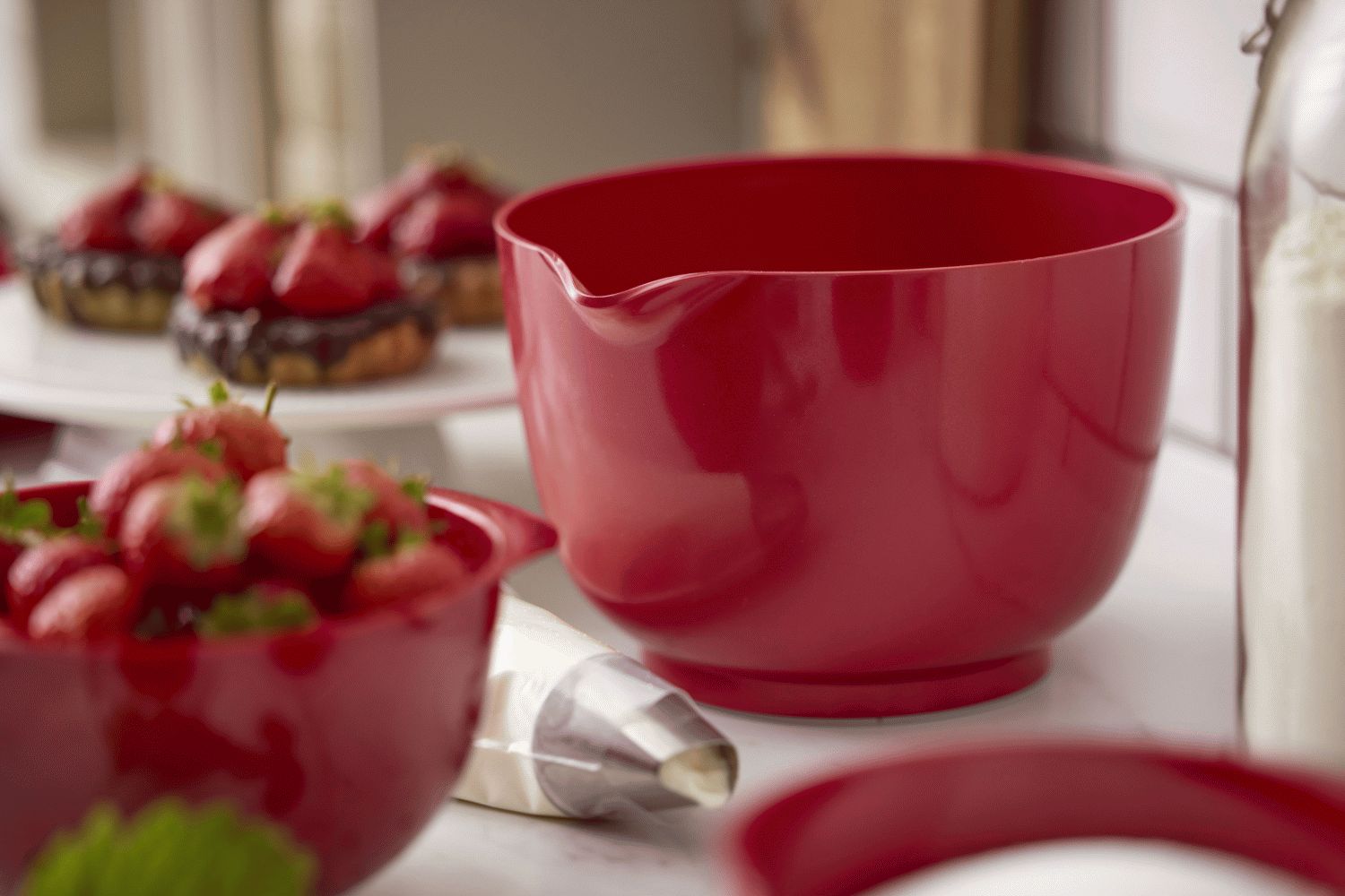 Diese rote Rührschüssel aus der legendären Margrethe-Serie verkörpert dänische Designgeschichte, die seit ihrer Einführung Tausende von Küchen erobert hat. Mit ihrem zeitlosen Erscheinungsbild und der durchdachten Funktionalität wird sie schnell zu deinem unverzichtbaren Küchenhelfer für alle Rühr-, Misch- und Gießarbeiten.Die charakteristische Form mit dem ergonomischen Griff und dem praktischen Ausgießer erleichtert dir jede Küchenarbeit erheblich. Dank des rutschfesten Bodenrings steht die Schüssel während der Verwendung absolut stabil auf deiner Arbeitsplatte. Die neue Version der beliebten Margrethe-Schüssel besteht aus dem innovativen Durostima® Material, das nicht nur recycelbar ist, sondern der Schüssel auch verbesserte Eigenschaften verleiht.