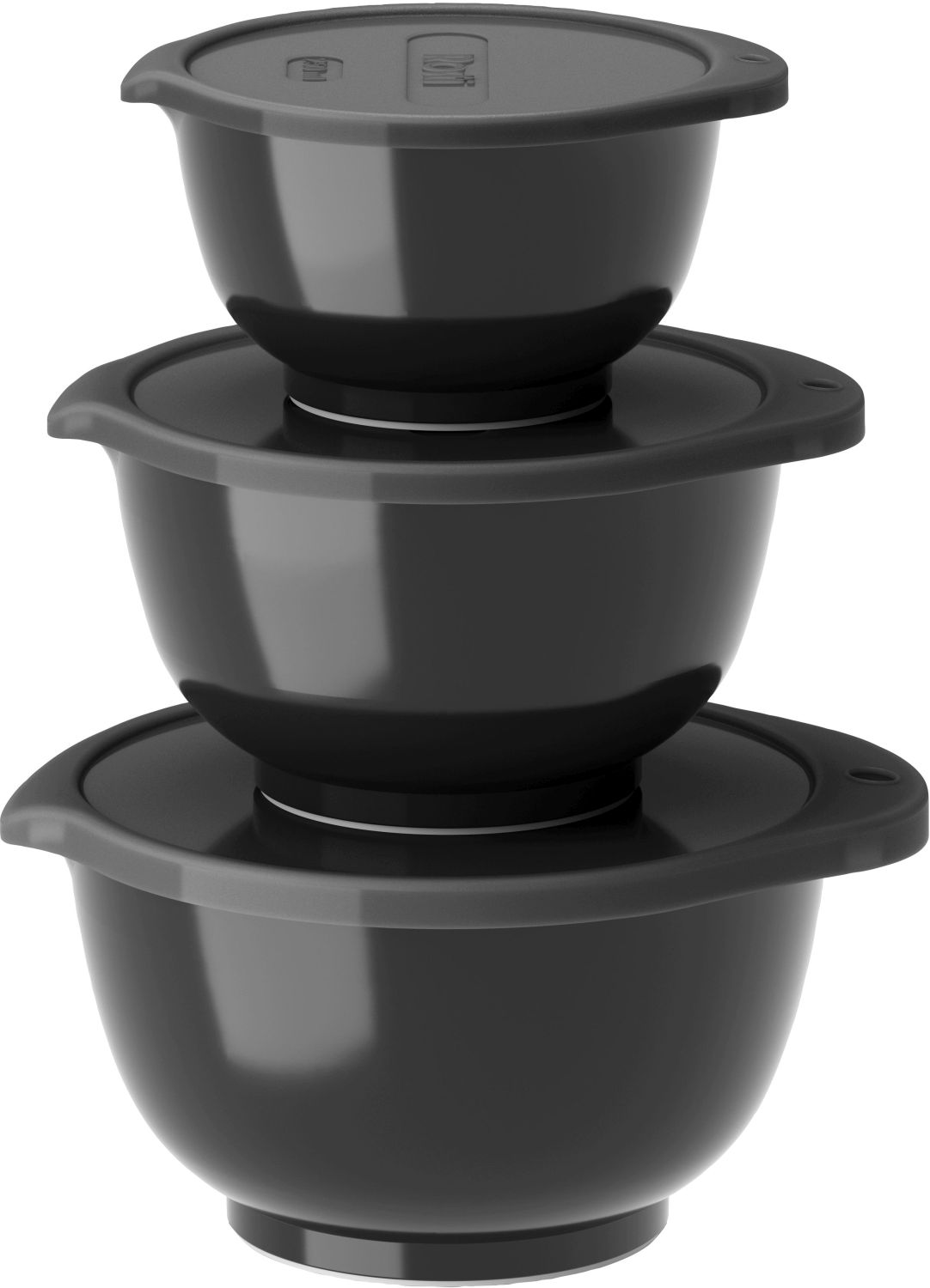 Mit diesem eleganten Rosti Margrethe Mini-Schüssel-Set in der Black Edition holst du dir ein Stück dänische Designgeschichte in dein Zuhause. Die ikonischen Margrethe-Schüsseln haben bereits Generationen von skandinavischen Küchen geprägt und kommen nun in einer raffinierten schwarzen Ausführung, die perfekt zum modernen Küchendesign passt.Das durchdachte Set umfasst drei verschiedene Größen - 0,25 L, 0,50 L und 0,75 L - und jede Schüssel wird mit einem passenden Deckel geliefert. Dadurch eignen sie sich ideal für die Zubereitung, das Servieren und die Aufbewahrung deiner Speisen. Die neue Generation der Margrethe-Schüsseln wird aus dem innovativen Durostima® gefertigt, einem recycelbaren Kunststoffmaterial, das die Schüsseln noch robuster und bruchsicherer macht als ihre Vorgänger.