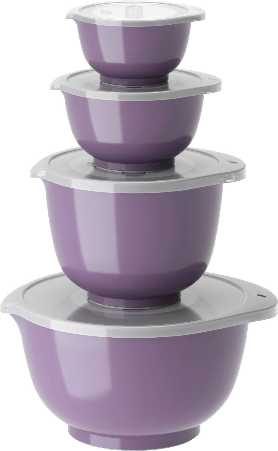 Mit diesem zeitlosen Rührschüssel-Set in der eleganten Lavendelfarbe holst du dir ein Stück skandinavische Designgeschichte in deine Küche. Das komplette Set von Rosti bringt die ikonische Margrethe-Schüssel zu dir nach Hause und verbindet dabei perfekt Funktionalität mit ästhetischem Anspruch.Das durchdachte Set besteht aus vier unverzichtbaren Größen - 0,25 Liter, 0,5 Liter, 1,5 Liter und 3 Liter - alle mit passenden Deckeln ausgestattet, die die Schüsseln ideal für Zubereitung, Servieren und Aufbewahrung machen. Jede Schüssel überzeugt mit dem charakteristischen ergonomischen Griff, der dir Stabilität beim Rühren garantiert, einem praktischen Ausgießer für müheloses Ausschenken und einem rutschfesten Bodenring, der die Schüssel sicher an ihrem Platz hält.