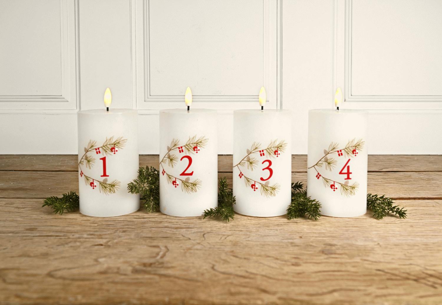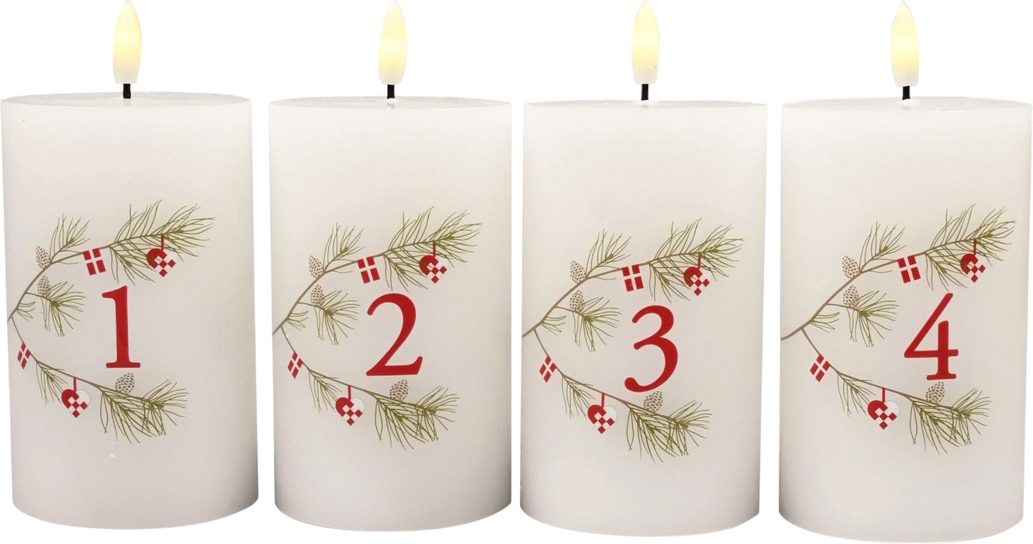 - Set mit 4 LED-Adventskerzen in klassischem Weiß