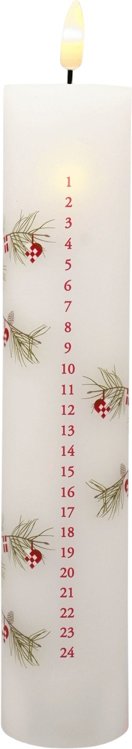 Die elegante Zylinderform mit ihrer angenehmen Größe eignet sich perfekt für Fensterbänke, Esstische oder als Teil einer größeren Weihnachtsarrangements. Das echte Wachsmaterial verleiht der Kerze eine authentische Haptik und Optik, während die integrierte LED-Beleuchtung für warmes, gemütliches Licht ohne offene Flamme sorgt. Diese durchdachte Technologie macht die Kalenderkerze besonders sicher für Familien mit Kindern oder als Geschenk für ältere Menschen.