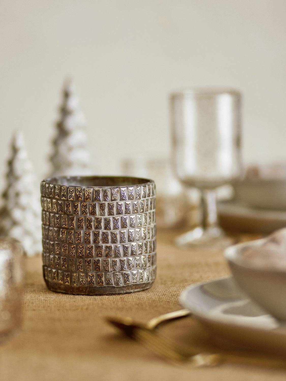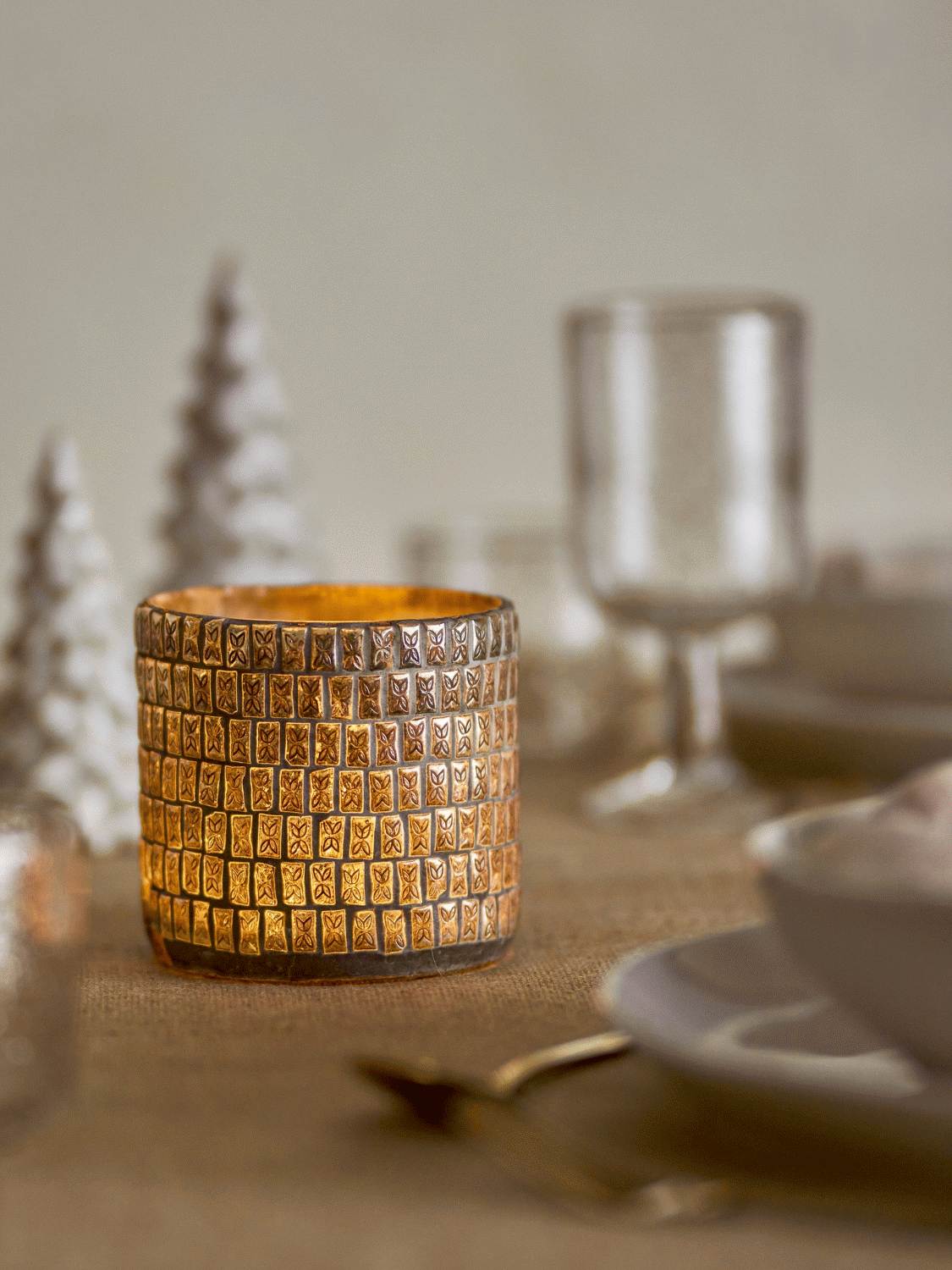 Mit dem Bloomingville Federika Teelichthalter holst du dir raffinierte Eleganz ins Zuhause, die durch ihre charakteristische Musterprägung aus recyceltem Glas jeden Raum in warmes Licht taucht. Diese 10 cm hohe Laterne vereint moderne Designelemente mit zeitloser Funktionalität und schafft eine einladende Atmosphäre, sobald das Teelicht entzündet wird.Die einzigartige Oberflächenstruktur dieser eleganten Kerzenhalters reflektiert das Licht auf besonders schöne Weise, sodass der goldene Schein der Flamme sanft durch den Raum wandert. Das neutrale, aber raffinierte Design macht Federika zu einer vielseitigen Dekoration, die sowohl in moderne als auch klassische Einrichtungsstile perfekt hineinpasst.