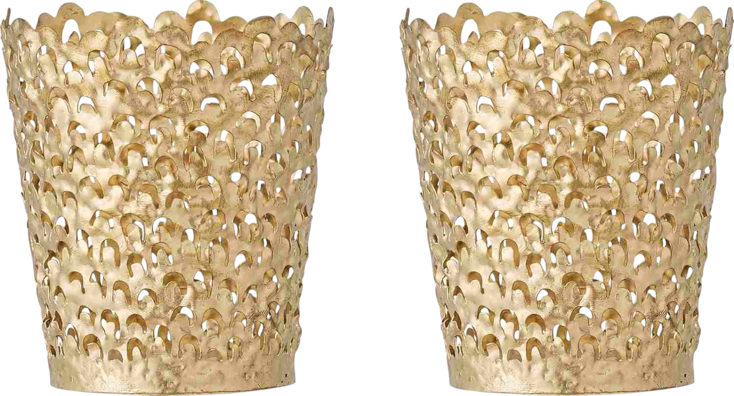 Das spraygoldene Finish verleiht diesen Teelichthaltern einen luxuriösen Charakter, der sowohl in moderne als auch klassische Einrichtungsstile harmonisch integriert werden kann. Die robuste Metallkonstruktion garantiert dir langanhaltende Qualität, während die durchbrochene Oberfläche dem Licht erlaubt, frei zu tanzen und wunderschöne Schattenmuster in deinem Raum zu kreieren.