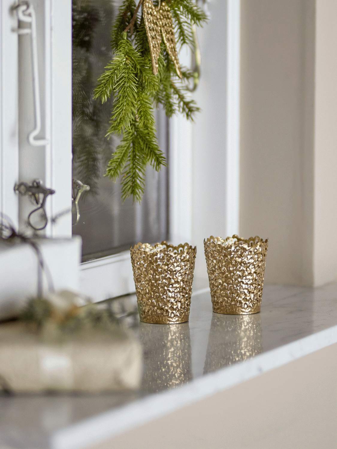 Mit diesen raffinierten Teelichthaltern aus dem Hause Bloomingville verwandelst du dein Zuhause in eine Oase skandinavischer Gemütlichkeit. Die Mizou Serie verkörpert die perfekte Symbiose aus modernem Design und funktionaler Beleuchtung, die durch ihr einzigartiges perforiertes Muster bezaubernde Lichtspiele an deinen Wänden entstehen lässt.Das spraygoldene Finish verleiht diesen Teelichthaltern einen luxuriösen Charakter, der sowohl in moderne als auch klassische Einrichtungsstile harmonisch integriert werden kann. Die robuste Metallkonstruktion garantiert dir langanhaltende Qualität, während die durchbrochene Oberfläche dem Licht erlaubt, frei zu tanzen und wunderschöne Schattenmuster in deinem Raum zu kreieren.