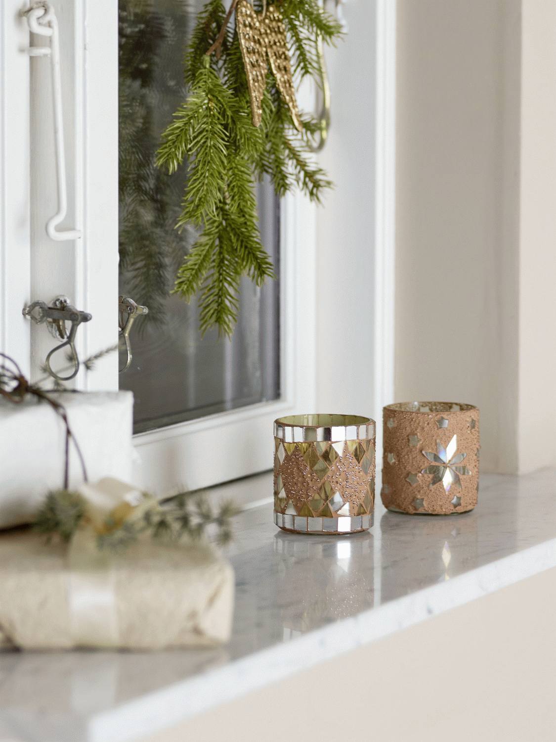 - Set bestehend aus zwei Glas-Teelichthaltern mit Mosaikeffekt