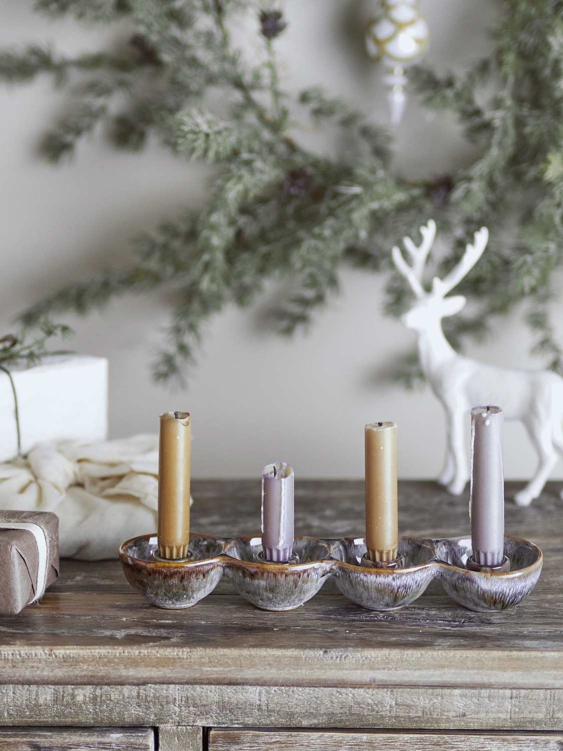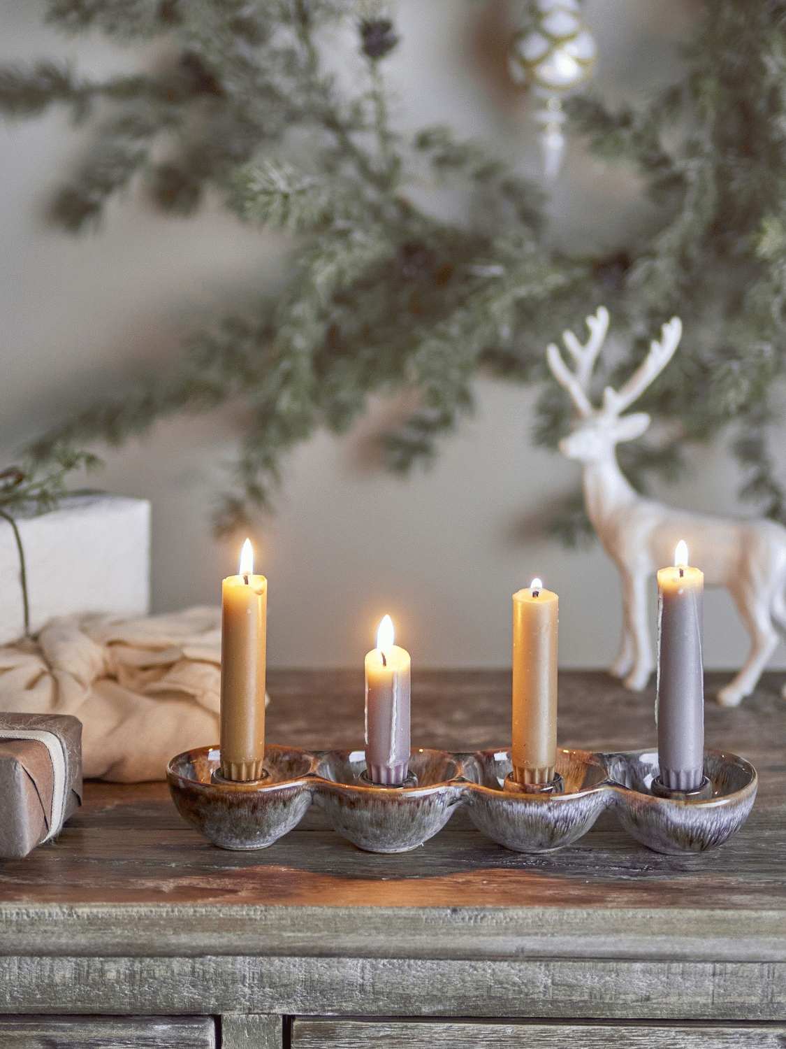 Das Steinzeugmaterial ist nicht nur schön anzusehen, sondern auch praktisch im Alltag. Es ist langlebig und leicht zu reinigen, was bedeutet, dass du deinen Adventskerzenhalter Jahr für Jahr als liebgewonnene Weihnachtstradition verwenden kannst. Die erdigen Farbtöne machen ihn zu einem vielseitigen Dekorationselement, das sowohl in moderne als auch klassische Einrichtungsstile passt.
