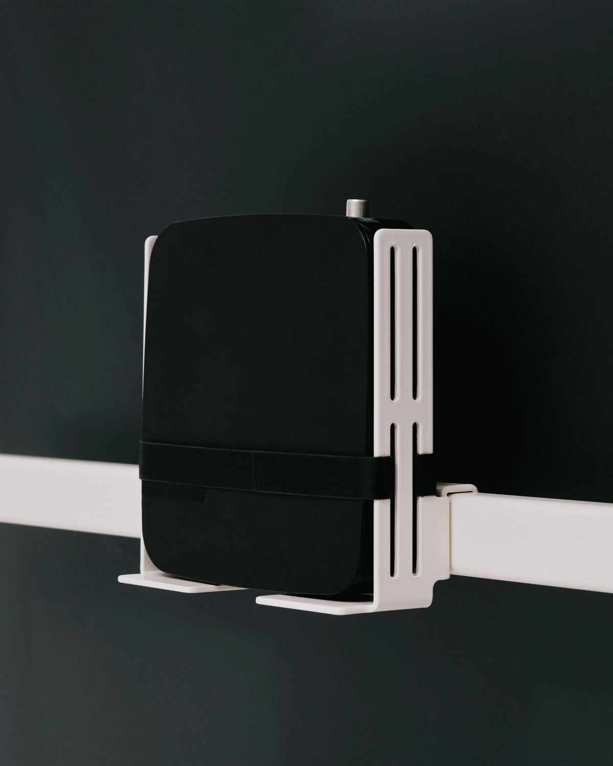 Das intelligente Montagesystem besteht aus zwei robusten Aluminiumbeschlägen mit vormontiertem Klettverschluss, die eine stabile und sichere Platzierung deiner Geräte gewährleisten. Die geniale Flexibilität zeigt sich in der verstellbaren Distanz zwischen den Beschlägen – so passt die Box Mount sowohl zu kompakten TV-Boxen als auch zu größeren Spielekonsolen mühelos.
