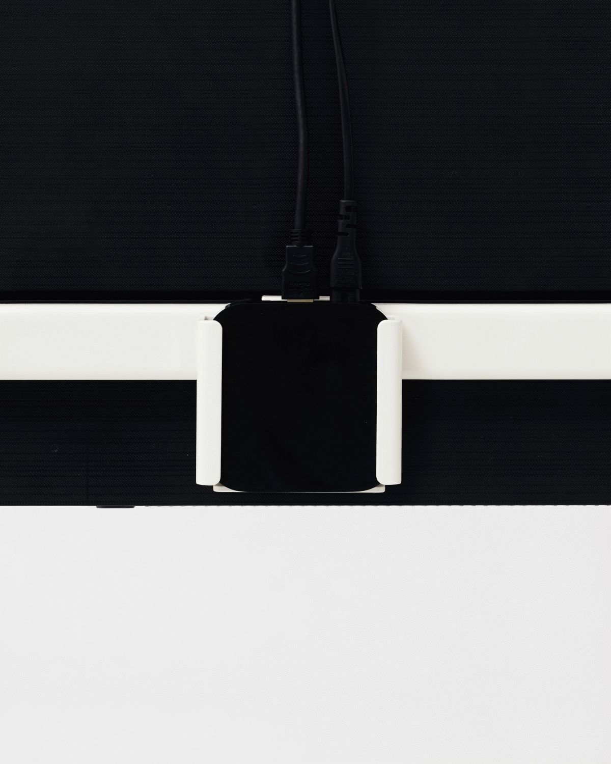 Diese durchdachte Lösung ermöglicht es dir, dein Medienequipment zu organisieren, ohne Kompromisse bei Funktionalität oder dem visuellen Ausdruck einzugehen. Indem du dein Apple TV diskret hinter dem Bildschirm montierst, kannst du die klaren Linien und das minimalistische Erscheinungsbild beibehalten, das moderne skandinavische Einrichtung auszeichnet.